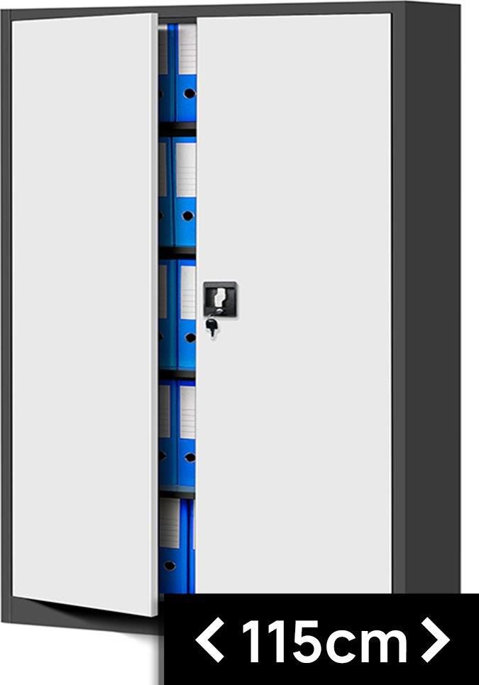 Biurowa szafa metalowa na akta JAN II, 1150 x 1850 x 400 mm, antracytowo-biała Szafa JAN NOWAK model JAN II – stalowa, antracytowo-biała, na dokumenty, sprzęt medyczny, narzędzia Zamykana szafa JAN IIZamykana szafa JAN II – niezastąpiona na dokumenty, ale nie tylko. Dzięki swoim rozmiarom i pełnej …