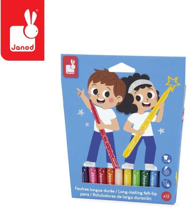 Janod 12 Trwałych Pisaków Z Filcową Końcówką Zamknięta Stożkowa Końcówka Dla Różnych Grubości Linii Zmywalny Kreatywne Hobby I Rękodzieło Katowice