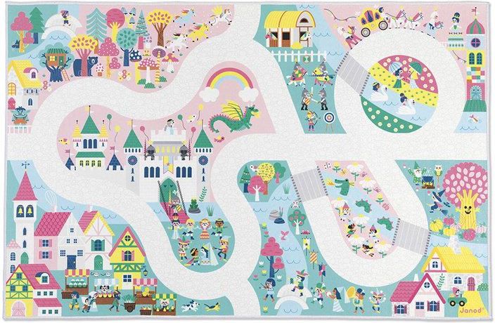 Mata-dywan do zabawy z drogą Zaczarowane królestwo z kolekcji Cross Roads francuskiej marki JANOD to idealny prezent dla dzieci już od 2. roku życia. Ma spore rozmiary 120 x 77,5 cm, jest przyjemna w dotyku oraz pozostaje na swoim miejscu, dzięki antypoślizgowej warstwie spodniej. Mata przedstawia …