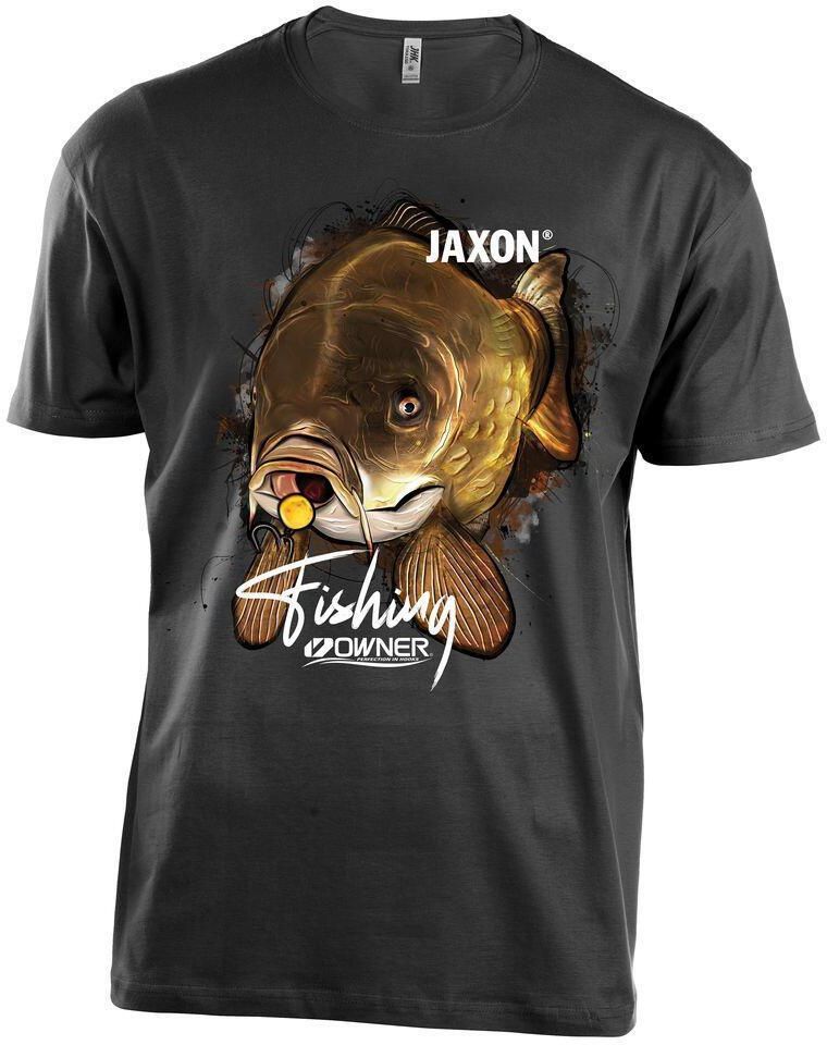 KOSZULKA JAXON NATURE CZARNA KARP rozm. L Bawełniana koszulka Jaxon Nature z krótkim rękawem i wzorem przedstawiającym szczupaka. Nowoczesna technologia druku gwarantuje odpowiednią trwałość. Jakość użytych materiałów oraz krój koszulek zapewniają komfort w codziennym użytkowaniu.