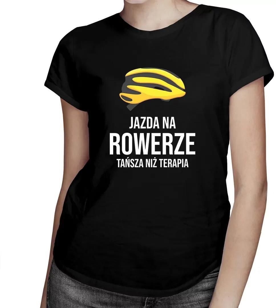 Jazda na rowerze - tańsza niż terapia - damska koszulka z nadrukiem Katowice