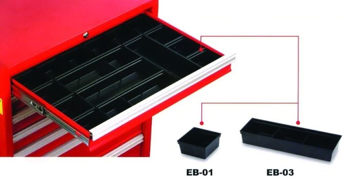 Zestaw plastikowych korytek 16szt. C-A2501S ZAWARTOŚĆ: 4szt. - korytka 94x284mm 12szt. - korytka 94x94mm 8szt. - przegródka do korytek 94x284mm Zestaw korytek całkowicie wypełnia jedną szufladę wózka narzędziowego. Idealny do przechowywania małych elementów takich jak: śruby, nakrętki, wkręty, nity, złączki itp.