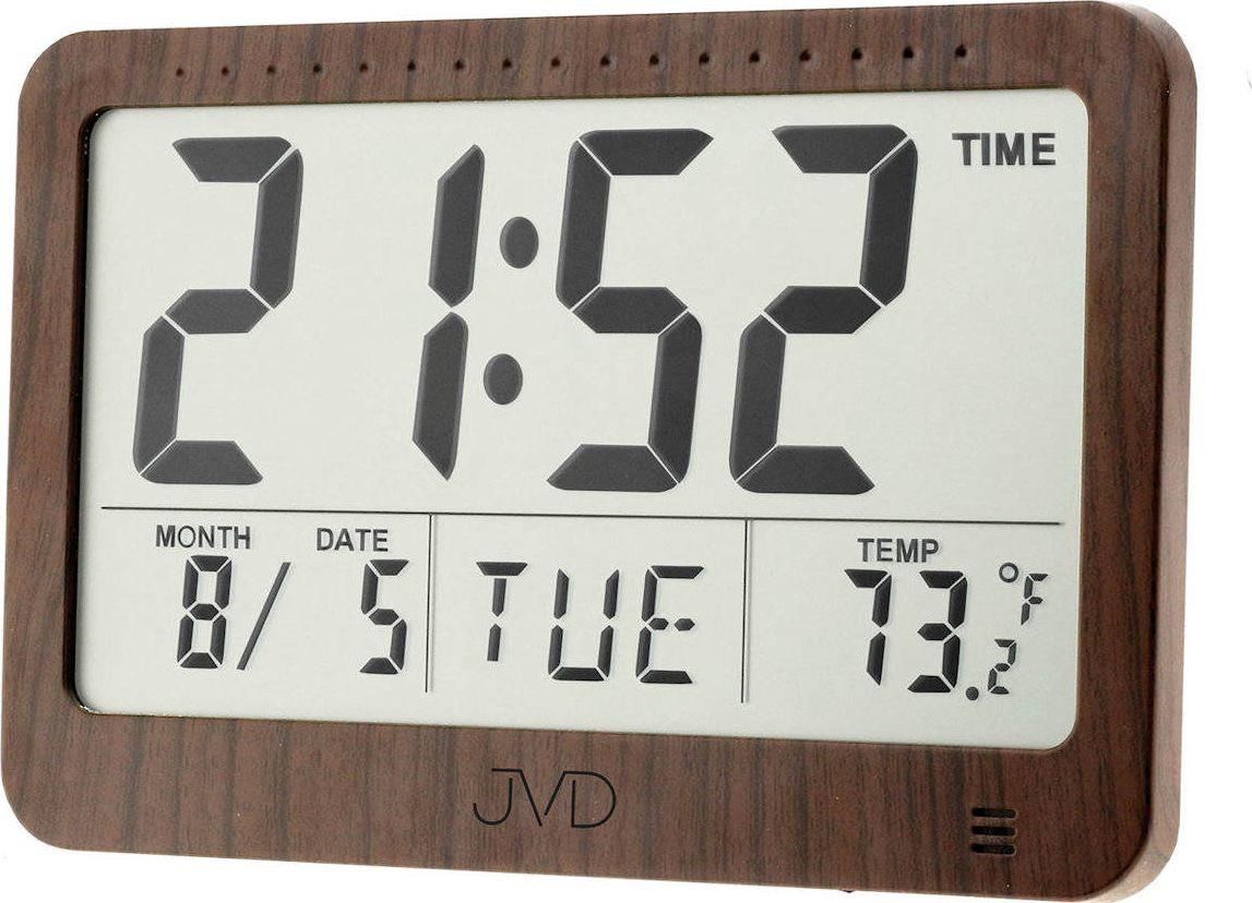 JVD Budzik DH9711 z termometrem Budzik JVD DH9711 z termometrem to model, który łączy w sobie funkcjonalność oraz elegancki design. Dzięki nowoczesnym rozwiązaniom, ten cyfrowy model świetnie sprawdzi się w każdej sypialni czy biurze, dodając charakteru i stylu do wnętrza. Wybór odpowiedniego budzika to nie tylko kwestia estetyki – ważne są również jego funkcje oraz jakość wykonania, które wpływają na komfort codziennego użytkowania. Wygląd i materiały Ten model wyróżnia się prostokątną formą i elegancką obudową w brązowym kolorze, co czyni go idealnym dodatkiem do różnorodnych aranżacji. Wysokiej jakości tworzywo sztuczne, z którego wykonano obudowę, gwarantuje trwałość i odporność na codzienne użytkowanie. Dzięki zastosowaniu szkła hesalitowego, które zapewnia długotrwałą przejrzystość i odporność na zarysowania, można być pewnym, że wyświetlacz będzie zawsze dobrze widoczny. Wymiary Kompaktowe rozmiary budzika sprawiają, że jest on praktyczny i łatwy do umieszczenia w różnych miejscach. Z szerokością 19 cm, wysokością 12,5 cm oraz grubością 2,5 cm, ten model idealnie pasuje zarówno na biurko, jak i na stolik nocny czy półkę. Takie wymiary umożliwiają wygodne użytkowanie bez zajmowania zbyt wiele miejsca. Mechanizm i zasilanie Ten budzik działa na bazie precyzyjnego mechanizmu kwarcowego, który zapewnia wysoką dokładność pomiaru czasu z marginesem błędu wynoszącym +/- 10 sekund w ciągu 30 dni. Zasilany jest za pomocą baterii, co czyni go wygodnym i bezproblemowym w codziennym użytkowaniu. Taki sposób zasilania sprawia, że model można umieścić w dowolnym miejscu, bez obaw o dostęp do gniazdka elektrycznego. Dodatkowe funkcje Budzik JVD DH9711 oferuje szereg funkcji dodatkowych, które zwiększają jego funkcjonalność i ułatwiają codzienne życie. Oto niektóre z nich: alarm z funkcją drzemki, pozwalający na dodatkowe pięć minut snu, wskazanie aktualnej daty dzięki automatycznemu kalendarzowi w języku polskim, wskazanie temperatury zarówno w stopniach Celsjusza, jak i Fahrenheita, co pozwala na bieżąco monitorować warunki w pomieszczeniu, możliwość wyboru formatu godziny – 12 lub 24-godzinnego, co odpowiada preferencjom różnych użytkowników. Dzięki tym udogodnieniom, ten produkt staje się nie tylko urządzeniem do mierzenia czasu, ale także praktycznym asystentem w codziennym życiu, który dostosowuje się do potrzeb użytkownika.