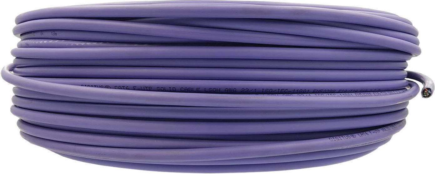 Skrętka ekranowana F/UTP kat.6 4x2xAWG23/1 drut miedziany, Eca, płaszcz LSOH, rolka 100m DIGITUS nr katalogowy: 72462 Opis przedmiotu Przewód sprzedajemy wyłącznie w rolkach zawierających 100mb kabla i prosimy o nie zamawianie tego przewodu w innych długoœściach. Na innych naszych aukcjach oferujemy ten kabel w rolkach 305mb oraz 500mb. Dostawcą przewodu jest renomowana niemiecka firma DIGITUS, karta katalogowa, hiperlink do strony producenta oraz szczegółowa specyfikacja dostępna jest pod adresem: www.stratos.pl/strony/72462.htm Skrętka jest rodzajem kabla teletransmisyjnego zbudowanego z jednej lub więcej par skręconych ze sobą przewodów miedzianych, przy czym każda z par posiada inną długość skręcenia w celu obniżenia zakłóceń wzajemnych, zwanych przesłuchami. Wyróżnia się skrętkę nieekranowaną (U/UTP), ekranowaną folią (F/UTP i U/FTP) lub z ekranem w formie metalowej siatki (S/UTP, S/FTP, SF/UTP i SF/FTP). Skrętki mają zastosowanie w łączach telekomunikacyjnych oraz sieciach komputerowych, obecnie najczęściej wykorzystywana jest w telefonii analogowej oraz w sieciach Ethernet. Skrętka ma zastosowanie przy przesyłaniu danych w postaci analogowej jak i cyfrowej. Żyły wewnętrzne wykonywane są z drutu (kable z żyłami z pojedyńczego drutu o lepszych parametrach transmisyjnych niż linka wykorzystywane są do położenia na stałe) lub z linki 7-mio drucikowej (kable z żyłami z linki z uwagi na wyższą odporność na zginanie wykorzystywane jako patchcordy). Skrętki, w zależności od szerokości pasma przenoszonych częstotliwości sygnału oznaczane są przynależnością do jednej z następujących klas (wg TIA/EIA 568A) lub kategorii (wg ISO 11801 EN50173): klasa D (kategoria 5/5E - pasmo 100MHz) klasa E (kategoria 6 - pasmo 250MHz) klasa EA (kategoria 6A - pasmo 500MHz) klasa F (kategoria 7 - pasmo 600MHz) klasa FA (kategoria 7A - pasmo 1000MHz) klasa I (kategoria 8.1 - pasmo 2000MHz) klasa II (kategoria 8.2 - pasmo 2000MHz) Oferowany przez nas przewód jest ekranowaną skrętką F/UTP spełniającą wymogi kategorii 6 (klasa E, pasmo 250MHz). Skrętka posiada 4 pary przewodów wykonanych z miedzianego drutu o średnicy Ø0.55mm (przekrój AWG23). Płaszcz zewnętrzny spełniający klasę palności Eca wykonany jest z tworzywa bezhalogenowego LSOH. Podczas pożaru kabel nie wydziela gęstych, korozyjnych i toksycznych gazów oraz nie rozprzestrzenia ognia. Oferowana skrętka spełnia standardy ISO/IEC 11801 3rd Ed., IEC 61156-5 EN 50173-1/4, EN 50288-5-1, ANSI/TIA 568-C, EN 50288-6-1, IEC 60332-1, IEC 60754-2, IEC 61034, zapewnia transmisję do 5000Mb/s oraz obsługę PoE i PoE+. Dane techniczne Kategoria: 6, klasa E, pasmo 250MHz Klasa palności: Eca Długość: 100mb Kolor: fioletowy RAL4005 Waga: ok. 4.9kg Wymiary bębna (średnica/wysokość): 30/15cm Przewodnik: 4x2xdrut miedziany Ø0.55mm (AWG23/1) Izolacja żył: HD-PE, Ø1.08mm Płaszcz zewnętrzny: LSOH Ø7.2mm Spełniane standardy: ISO/IEC 11801 3rd Ed., IEC 61156-5 EN 50173-1/4, EN 50288-5-1, ANSI/TIA 568-C, EN 50288-6-1, IEC 60332-1, IEC 60754-2, IEC 61034 Specyfikacja i szczegółowe parametry dostępne są pod adresem www.stratos.pl/specyfikacje/72450A.pdf Oferowany przez nas produkt jest towarem nowym, nieużywanym, zapakowanym fabrycznie. Oferowany przedmiot tak jak wszystkie sprzedawane przez nas artykuły jest towarem aktualnie dostępnym w naszym magazynie co umożliwia natychmiastową wysyłkę.
