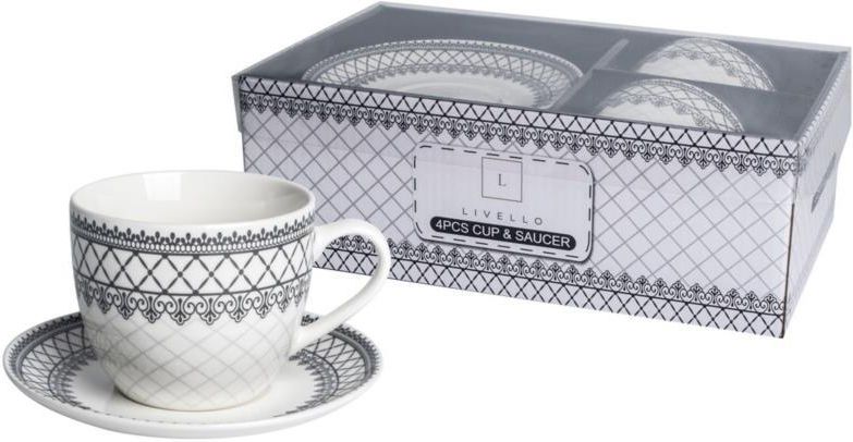 Komplet filiżanek Livello – gdy codzienność spotyka się z elegancją Wyobraź sobie poranek, w którym pierwszy łyk kawy smakuje inaczej – bardziej wyjątkowo, bardziej uroczyście. To właśnie magia kompletu filiżanekLivello. Ich porcelanowa biel, ozdobiona subtelnym czarnym ornamentem, przywołuje na myśl klasyczne wzory w nowoczesnym wydaniu – ponadczasowe, a zarazem niezwykle stylowe. Każda filiżanka o pojemności 280 ml (pojemność liczona po rant filiżanki) została stworzona, by celebrować codzienne chwile – czy to szybki łyk espresso, czy długie rozmowy przy herbacie. Eleganckie wykończenie sprawia, że kawa smakuje w nich tak, jak w najlepszej kawiarni, a Ty możesz cieszyć się tym luksusem we własnym domu. Zestaw zapakowany w ozdobne pudełko z przezroczystą pokrywką to także doskonały pomysł na prezent – gotowy, by zachwycić kogoś bliskiego. Bo Livello to nie tylko porcelana – to mała obietnica pięknych chwil, które zostaną na dłużej. Wzór: CR2-106 Produkt 2 x filiżanka 2 x spodek 1 x ozdobny kartonik Wymiary wysokość filiżanki: 7,5 cm średnica filiżanki: 8,8 cm długość filiżanki z uszkiem: 11,5 cm waga filiżanki: 223 g średnica spodka: 14,3 cm wysokość spodka: 2 cm waga spodka: 162 g pojemność całkowita filiżanki: 280 ml pojemność użytkowa filiżanki około 250 ml pudełko: 27 cm x 16,5 cm x h9 cm Materiał dobrej jakości porcelana Użytkowanie dopuszczone do kontaktu z żywnością do zmywarki