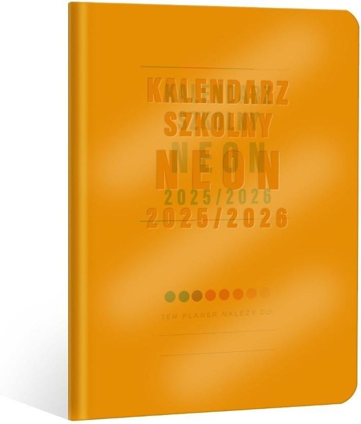 Kalendarz szkolny neon 2025/2026 Wydawca: Kalpol Oprawa: laminowana Format: 148x10 mm "Kalendarz książkowy. Układ kalendarium tygodniowy. Kalendarium od września 2025 do sierpnia 2026, 114 str, okładka miękka, półprzeźroczyste PVC w laserowym kolorze, zadruk 4+4, format 148 mm x 210 mm. środek …