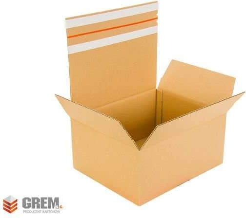 karton fasonowy z paskiem klejowym i tasiemką zrywającą 300x200x150mm 3W B 320g/m2 Paleta 1320szt. Katowice