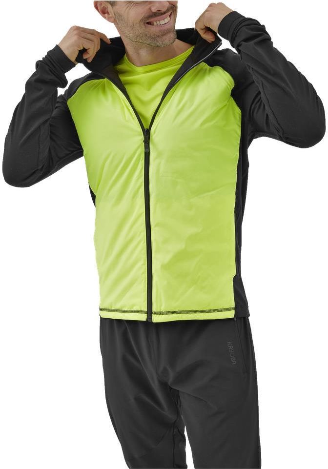 Dwustronna kurtka do biegania marki Kayoba. Kurtka ma elementy odblaskowe i jaskrawy kolor widoczny w ciemności. Jest także wodoodporna i ma otwory na kciuki w mankietach.