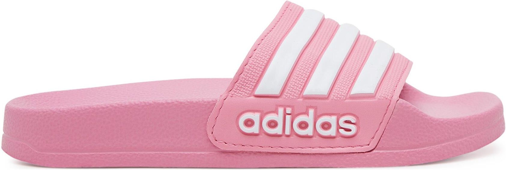 Klapki dla dzieci adidas Adilette Shower Wygodne dziecięce klapki basenowe adidas. Ich górna część oplatająca stopę wykonana została z jednego, syntetycznego elementu, który jest lekki i szybko schnie. Specjalne żłobienia umożliwiają naturalny ruch stopy. Podeszwa zewnętrzna została uformowana z …
