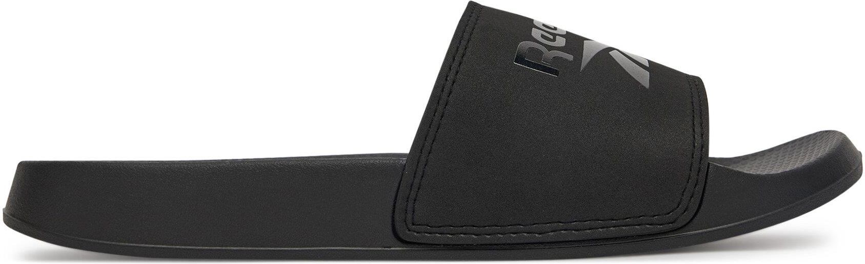 Reebok Fulgere Slide Klapki Męskie 46 Specyfikacja produktu Producent - Reebok Płeć - Męskie Kolor dominujący - Czarny Kolor Producenta - Black Materiał - Syntetyk Materiał wkładki - Inny Materiał Podeszwa wewnętrzna - Pianka Poliuretanowa Podeszwa zewnętrzna - Guma Przeznaczenie - Klapki Indeks - …