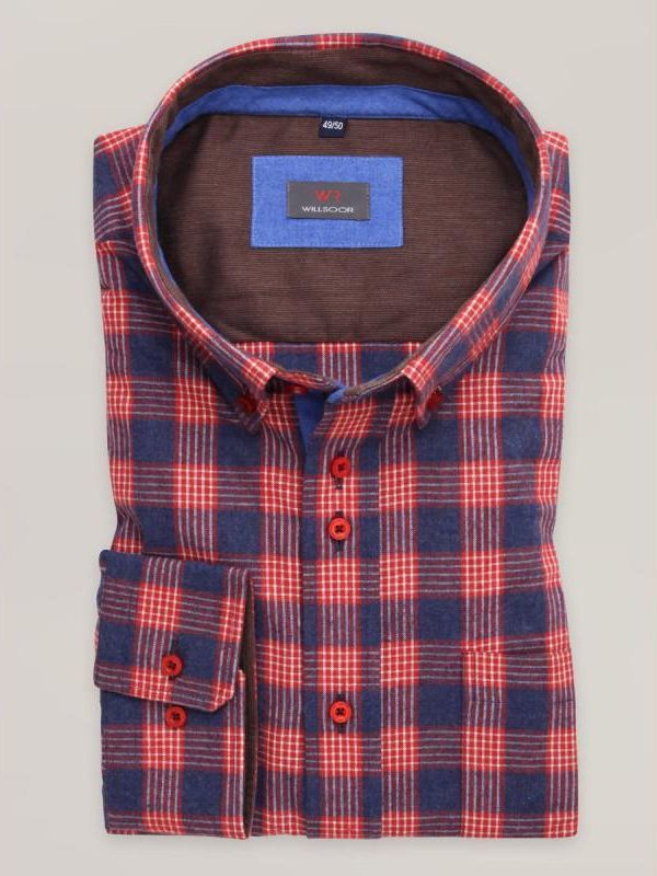 Klasyczna koszula w czerwoną i granatową kratkę z podpinanym kołnierzykiem