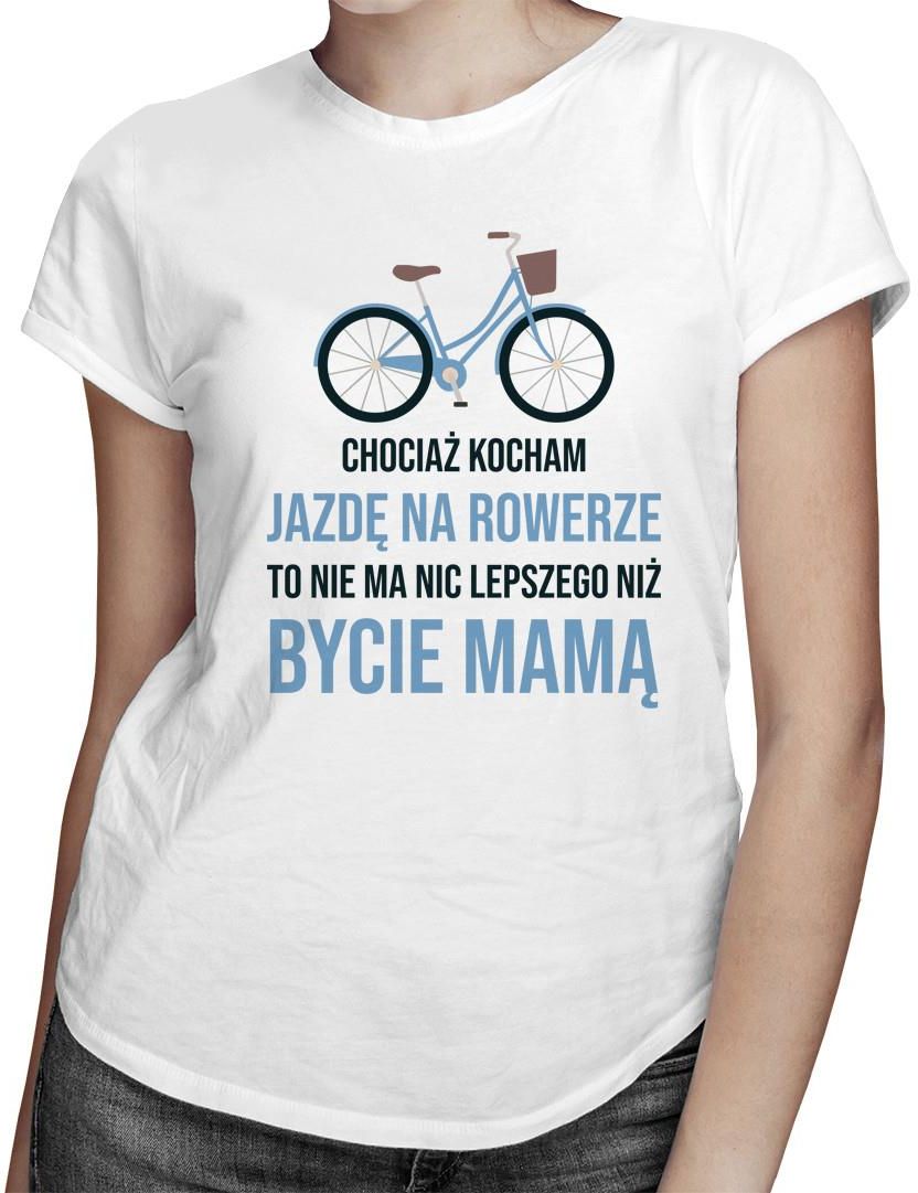 Chociaż kocham jazdę na rowerze, to nie ma nic lepszego niż bycie mamą Koszulka z nadrukiem. Idealna na prezent. Wykonana z grubej, miłej w dotyku, wysokiej jakości bawełny.