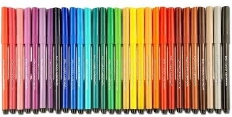 Flamastry szkolne posiadają ergonomiczny, trójboczny kształt. Dzięki czemu są wygodne w trzymaniu i używaniu. Flamastry zawierają atrament na bazie wody, co ułatwia spieranie z większości standardowych tkanin. Zabrudzone przedmioty można łatwo umyć używając wody z mydłem. Flamastry wykonane zostały …
