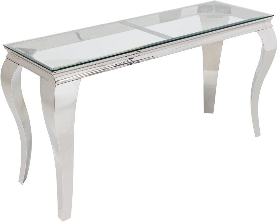 KONSOLA MODERN BAROCK BARRACUDA 145X50 CM Konsola MODERN BAROCK BARRACUDA to idealne rozwiązanie do każdego salonu i wnętrza w stylu nowoczesnym, gdzie mebel ten dzięki swojej unikatowej formie przykuje uwagę każdego, a także nada wnętrzu charakteru i naturalnego wykończenia. W górnej części składa się z przezroczystego blatu wykonanego ze szkła hartowanego, którego bez wątpienia głównym atutem jest niesamowity blat znajdujący się pod szybą wykonany z częściowo postarzanego, litego drewna tekowego, pochodzącego z recyklingu. Dzięki zachowaniu oryginalnej struktury drewna w postaci szczelin, słojów i sęków prezentuje się zjawiskowo. Całość mebla została osadzona na stabilnej i solidnej metalowej konstrukcji wykonanej z polerowanej stali nierdzewnej w kolorze srebrnym. Mebel ten perfekcyjnie odzwierciedla styl nowoczesny oraz barokowy, a jego szlachetne wzornictwo sprawi, że twój salon uzyska trochę luksusu oraz niezwykłej i niepowtarzalnej charyzmy, charakteru oraz niezwykłej elegancji jednocześnie stając się idealnym meblem do wyeksponowania dekoracji w domu. W całej serii MODERN BAROCK BARRACUDA występują stoły, stoliki, konsole, fotele, komody, pufy, sofy, ławy o różnych podstawach, wymiarach i kolorach - patrz produkty powiązane. Produkt sprzedawany bez blatu tekowego - jest on dostępny w naszym sklepie (kod produktu - 44374) Produkt jest wykonany z surowców naturalnych, przez co może różnić się od prezentowanych zdjęć. Wszystkie przetarcia, szczeliny oraz nierówności są zamierzone. Każdy produkt jest przez to unikalny i oryginalny. Invicta Interior to niezawodny dostawca ekskluzywnych designerskich mebli i akcesoriów domowych. Jest to dynamiczna i doświadczona firma z wieloletnimi międzynarodowymi kontaktami i stale poszukującą nowych produktów i innowacyjnych pomysłów. Dojrzała ogólna koncepcja firmy pozwala zaoferować klientom duży wybór nowoczesnych i klasycznych mebli o wyjątkowej jakości w rozsądnych cenach. Invicta Interior monitoruje wszystkie aktualne trendy w branży meblowej, dlatego klienci zawsze otrzymują najnowsze i najwyższej jakości designerskie meble.