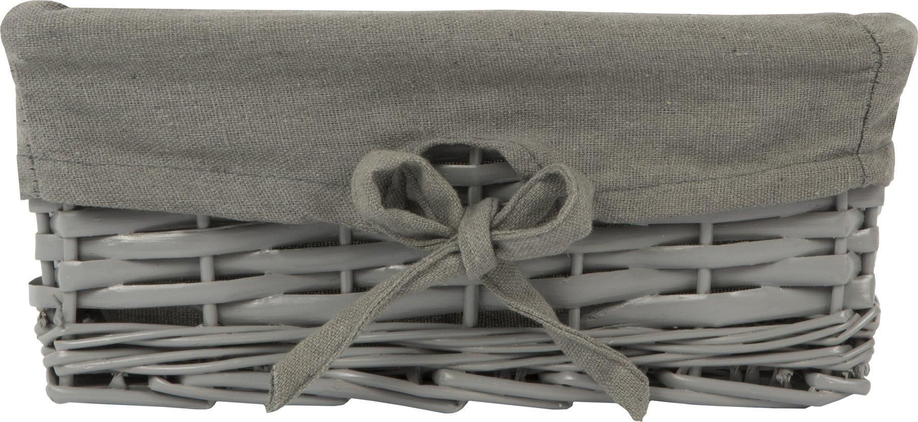 Koszyk wiklinowy szary z wyściółką szarą 27x17x11h Wymiary: Wysokość: 11 cm Dłuższy bok: 27 cm Krótszy bok: 17 cm Pojemność: 5 L Informacje: Kolor: Szary Materiał kosza: Naturalna wiklina Wyściółka: Szara Materiał wyściółki: Naturalny len Typ kosza: Koszyk Kod SKU: SZARY 520E SZARA Kod EAN: …