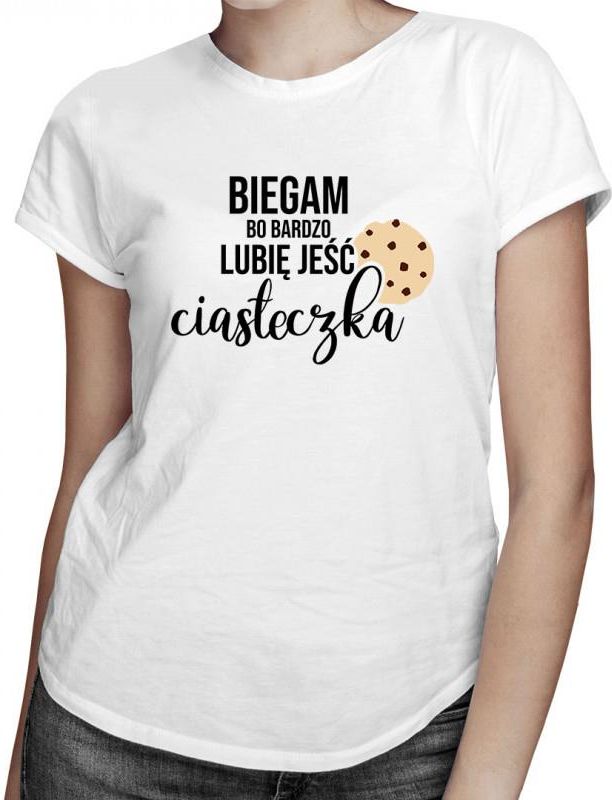 Koszulkowy Biegam Bo Bardzo Lubię Jeść Ciasteczka - Damska Koszulka Z Nadrukiem Katowice