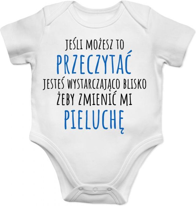 Jeśli możesz to przeczytać to jesteś wystarczająco blisko żeby zmienić mi pieluchę Body niemowlęce z nadrukiem. Wykonane w 100% z bawełny z nadrukiem przystosowanym do kontaktu ze skórą dziecka. Bezproblemowe ubieranie dzięki dwóm guzikom na ramieniu.