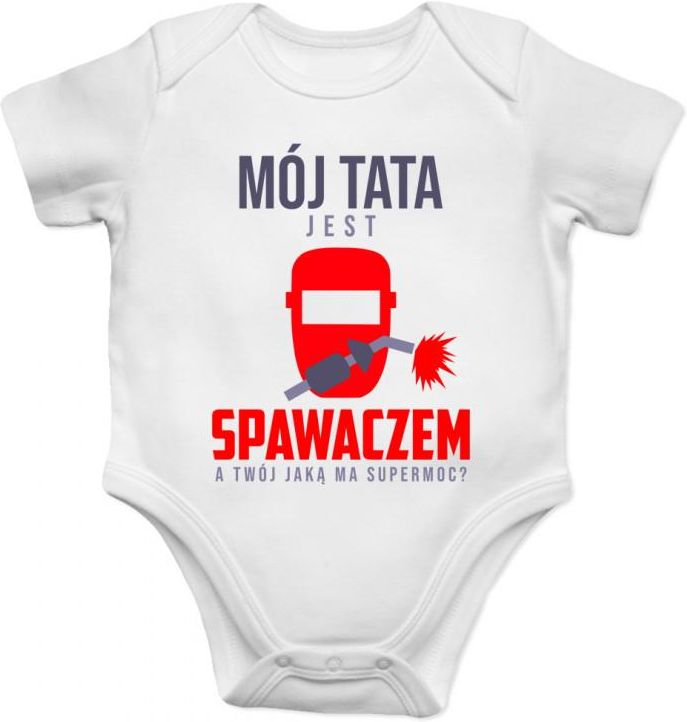 Mój tata jest spawaczem,a Twój jaka ma supermoc? Body niemowlęce z nadrukiem. Wykonane w 100% z bawełny z nadrukiem przystosowanym do kontaktu ze skórą dziecka. Bezproblemowe ubieranie dzięki dwóm guzikom na ramieniu.