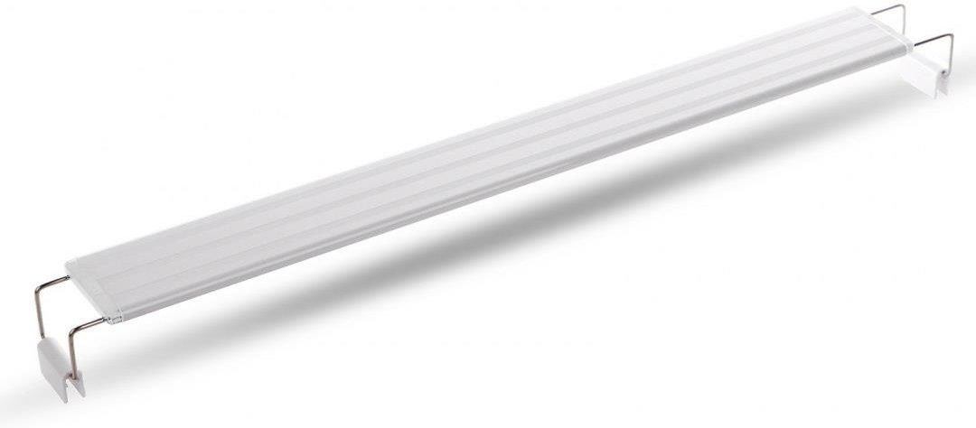 Kruger Meier Larino S-Line to seria oświetlenia LED o mikro rozmiarach i nowoczesnym wyglądzie, dedykowana do zbiorników słodkowodnych roślinnych. Lampy cechują się doskonałą mocą świetlną za którą odpowiadają energooszczędne diody High Brightnes LED. Główne światło to połączenie barwy białej 6500K, 7000K z 10000K. Dodatkowo, lampa posiada niebieskie diody LED, które nadają żywsze kolory roślinom. Mikro lampa Larino S-Line LED Znajdzie zastosowanie w akwarium roślinnym o niedużych rozmiarach. Do jej zalet można zaliczyć mikro rozmiary, energooszczędność, wysoka moc oświetlenia, świetna estetyka i mocno ekonomiczna cena. Lampa dedykowana dla wszystkich którzy cenią sobie rzetelność marki oraz bogate w rośliny akwaria słodkowodne. Moc światła Larino S-Line Lampa Kruger Meier Larino S-Line LED o poborze 18W generuje natężenie oświetlenia na poziomie 162000lx. W lumenach strumień świetlny to 5400lm. Diody w lampie Larino S-Line LED: Poprawiona technologia High Brightness LED pozwala na uzyskanie doskonałej skuteczności świetlnej na poziomie ok. 300lm/W. Dotychczasowo biała dioda LED będąca w sprzedaży generuje: 70-120 lm/ 1 W - (303 lm/W osiągnięto w maju 2014 roku). Poprawiając technikę diody, sposób montażu i podstawę diody producenta Kruger Meier wykorzystuje najskuteczniejsze diody w swoich lampach Larino S-Line LED, zapewniając wysoki współczynnik oddawania barw (CRI> 85). Sposób montażu lampy: Lampa montowana jest na krawędzi akwarium za pomocą nóżek będących częścią zestawu. Stojaki umożliwiają montaż na szybie o grubości od 2 do 8mm i umożliwiają montaż na akwariach o różnych szerokościach. Temperatura barwowa emitowana: Białe diody generują barwę o temperaturze od 6500K, 7500K do 10000K. Światło to doskonale wpływa na fotosyntezę roślin wspierając ich zdrowy i bujny wzrost. Dodatkowo, lampa została wyposażona w diody niebieskie, która nadają żywych kolorów roślinom i wybarwiają ryby. Obudowa lampy Lampa posiada ultra cienką opływową obudowę (zaledwie 8mm). Posiada elegancki biały kolor z wykończeniem, idealna do nowoczesnego wystroju mieszania i domu. Kruger Meier to producent nowoczesnego oświetlenia LED o zastosowaniu domowym jak i przemysłowym. Bezkompromisowo korzystają z najnowszych osiągnieć technologicznych. Ich produkty zawsze są o krok przed konkurencją, niezależnie z jakiej dziedziny. Lampy akwarystyczne, są naturalną ewolucją produktów tego producenta. Moc świetlna i nowoczesny design są wyznacznikiem marki. Dane techniczne: - pobór mocy: 18W - natężenie oświetlenia: 162000lx - strumień świetlny: 5400lm - dedykowane do akwarium o szerokości od 60cm do 70cm - wymiary: 59 x 7 x 0,8cm