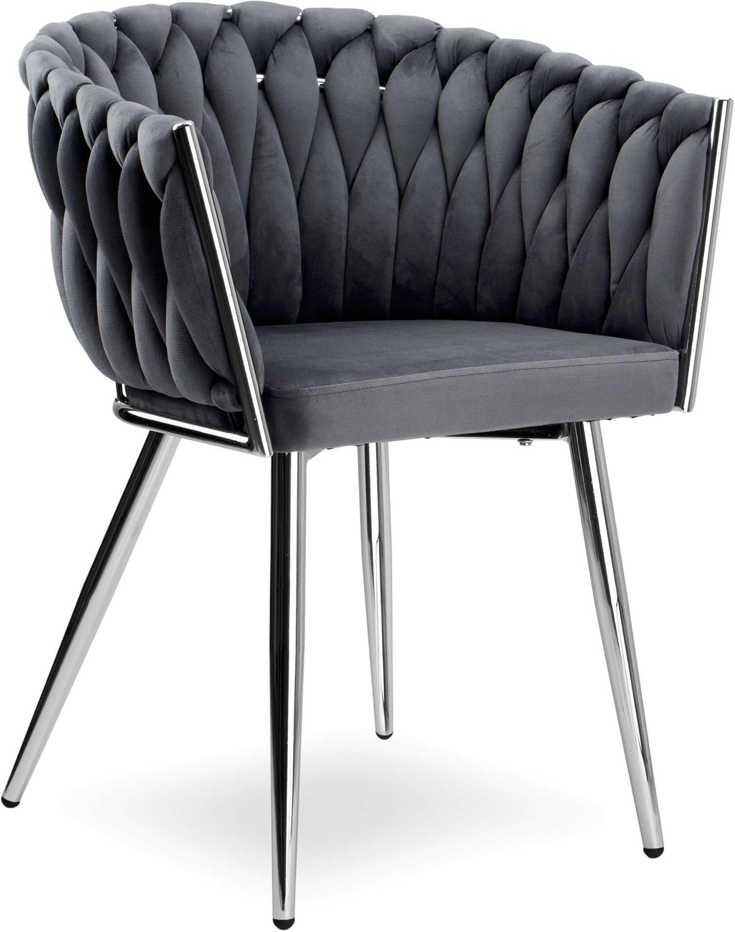Krzesło Welurowe Plecione Cofton Chrom Velvet Grafitowy Katowice