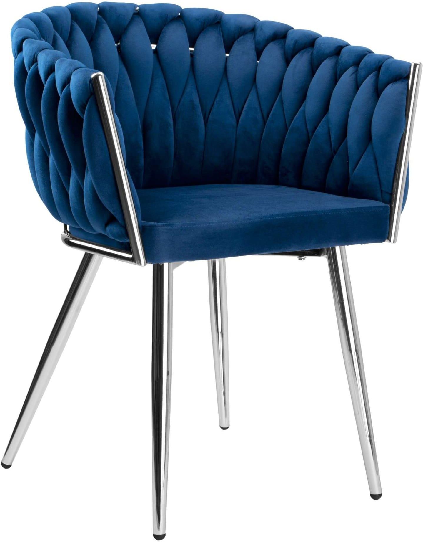 Krzesło Welurowe Plecione Cofton Chrom Velvet Granatowy Katowice
