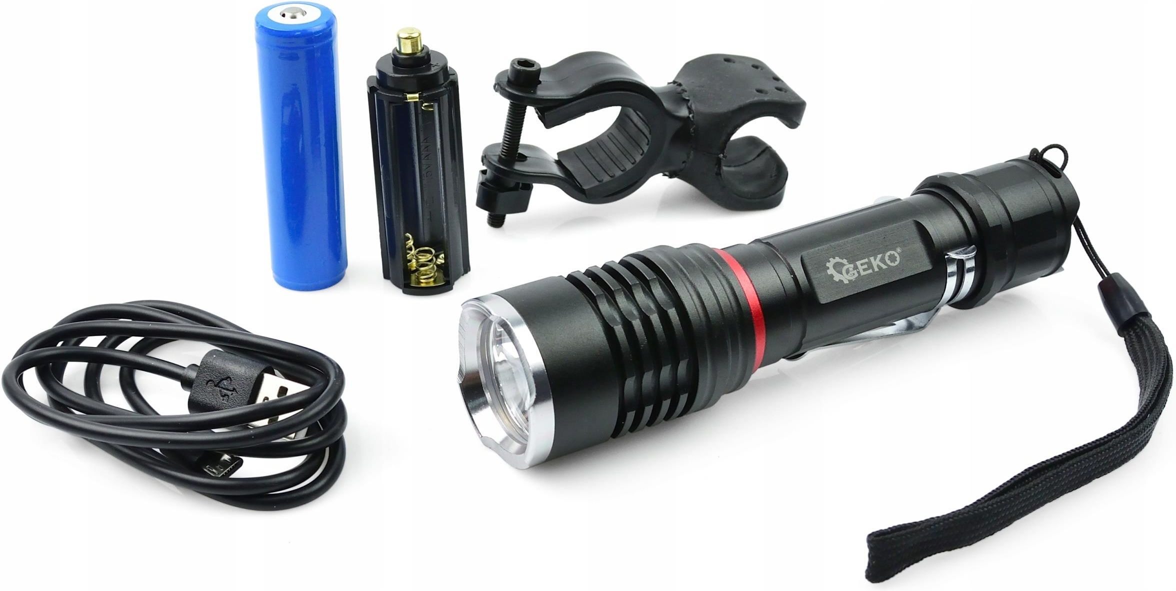 GEKO - LATARKA ROWEROWA CREE 10W 800lm LED + UCHWYT Kod produktu: G15120 Wysokiej jakości rowerowa latarka akumulatorowa wyposażona w najnowszej generacji diodę LED T6 Cree renomowanej polskiej marki Geko Prosta w obsłudze i przyjazna użytkownikowi. JEDNA Z NAJLEPSZYCH LATAREK ROWEROWYCH TEJ KLASIE …