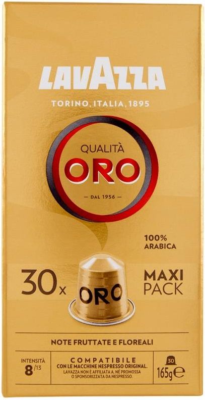 Lavazza Qualita Oro 30 kapsułek do Nespresso Lavazza, założona w 1895 roku we włoskiej Turynie, od ponad wieku łączy tradycję z innowacją, tworząc kawę o wyjątkowym smaku. Firma zdobyła uznanie dzięki dbałości o jakość, zrównoważonemu podejściu do upraw i pasji do włoskiej kawy. Współczesne rozwiązania Lavazza, takie jak kapsułki do systemu Nespresso, umożliwiają szybkie i wygodne przygotowanie ulubionego napoju, gwarantując stałość smaku i aromatu za każdym razem. To idealne połączenie tradycji z nowoczesnością dla miłośników kawy ceniących sobie komfort i wysoką jakość. Lavazza Qualita Oro jest doskonale znana każdemu miłośnikowi włoskiej kawy 100% arabika. Sukces tej mieszanki to efekt kompozycji najlepszych ziaren i ich odpowiedniego wypalenia. To wszystko sprawia, że Qualita Oro posiada niepowtarzalny smak i urzekający aromat. Jej ziarna są uprawiane na plantacjach położonych głównie w Ameryce Środkowej i Południowej, a po zakończonym procesie palenia są odpowiednio mielone i zamykane w hermetycznych opakowaniach. Odpowiednie przygotowanie kawy Qualita Oro pozwala nam wydobyć z niej najlepsze właściwości smakowe. Lavazza Qualita Oro zachwyca delikatnie słodkim smakiem, a jej niebywały aromat przypomina mieszankę kwiatów i owoców. DOKŁADNE INFORMACJE Producent: Luigi Lavazza Typ kawy: kawa mielona w kapsułkach Nespresso Waga netto: 165 gram - 30 kapsułek Mieszanka: Arabika 100% Charakterystyka kawy w skali 10-cio stopniowej: Intensywność smaku: 8/13 Aromatyczność: 9/13 Crema(pianka): 8/13 Cielistość kawy: 7/13 Goryczka: 3/13 Dodatkowe: Kraj pochodzenia: Włochy Termin przydatności: 30.05.2026 Kapsułki Nespresso firmy Lavazza oferują: Wygodę i szybkość: Parzenie kawy w zaledwie kilka sekund, bez potrzeby mielenia ziaren czy precyzyjnego dozowania. Stałą jakość: Każda kapsułka gwarantuje spójny smak i aromat, co pozwala cieszyć się ulubionym napojem za każdym razem. Różnorodność smaków: Szeroka gama mieszanek kawowych umożliwia dopasowanie intensywności i profilu smakowego do indywidualnych upodobań. Łatwość czyszczenia: System kapsułkowy minimalizuje bałagan, eliminując konieczność skomplikowanej obsługi i czyszczenia urządzenia. Kapsułki Nespresso firmy Lavazza są idealnym rozwiązaniem dla miłośników kawy ceniących sobie komfort, jakość i różnorodność w codziennym parzeniu ulubionego napoju. Kapsułki pasują do wszystkich, współczesnych ekspresów Nespresso dla gospodarstw domowych. DeLonghi Citiz Citiz&co Citiz&milk Essenza Auto Essenza Manual Essenza Mini Inissia Lattissima Lattissima Plus Lattissima Touch Lattissima Pro Pixie Pulse U oraz Umilk KRUPS Citiz Citiz&co Citiz&milk Essenza Auto Essenza Manual Essenza Mini Gran Maestria Inissia Maestria Pixie Pulse U oraz Umilk
