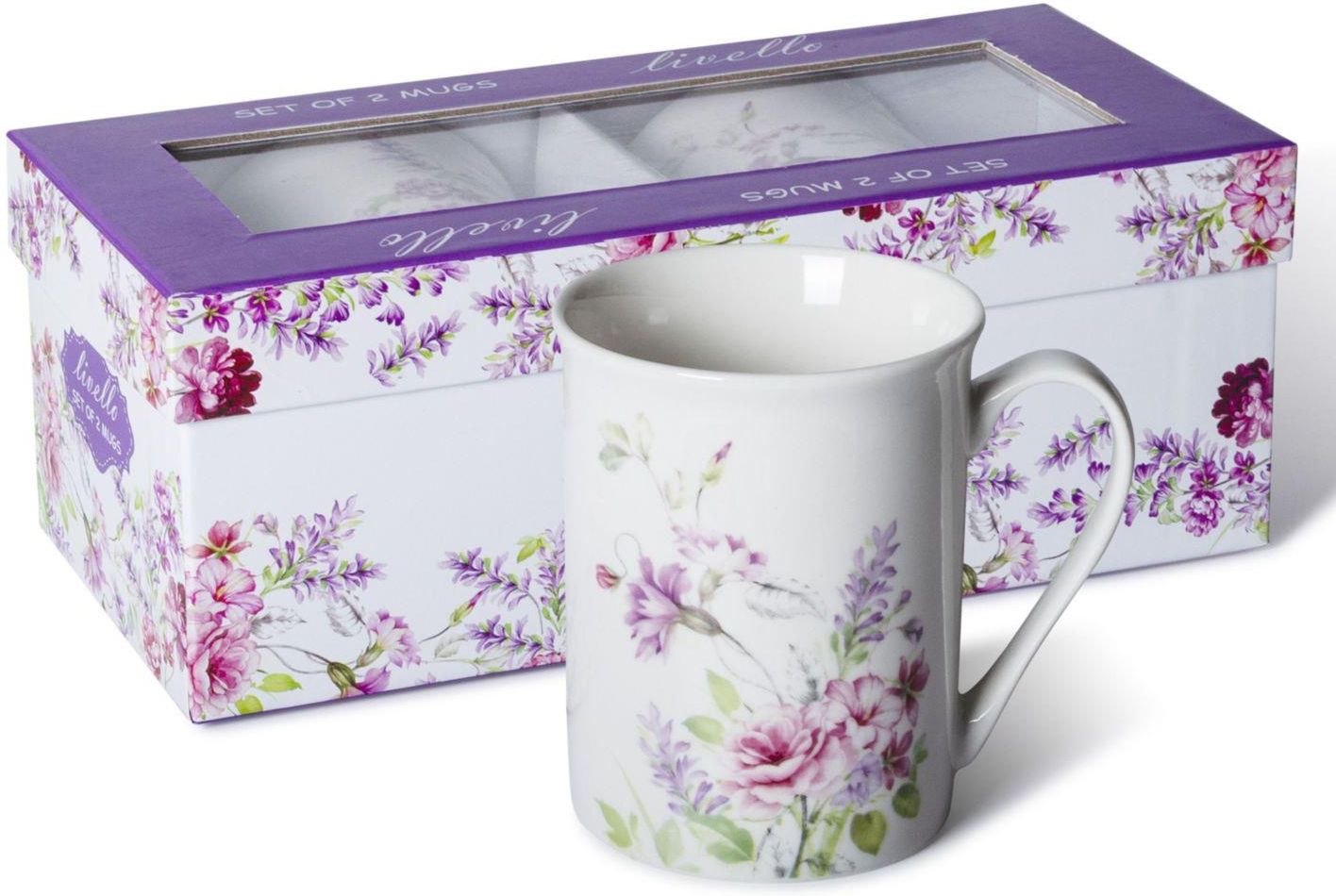 Komplet wykonany z dobrej jakości porcelany zdobionej motywem kwiatów. Produkt oryginalny - dopuszczony do kontaktu z żywnością. Wzór: kwiaty Produkt 2 x kubek 1 x ozdobne pudełko Wymiary wysokość kubka: 10 cm średnica kubka: 8 cm pojemność użytkowa: 320 ml Materiał dobrej jakości porcelana Użytkowanie dopuszczone do kontaktu z żywnością