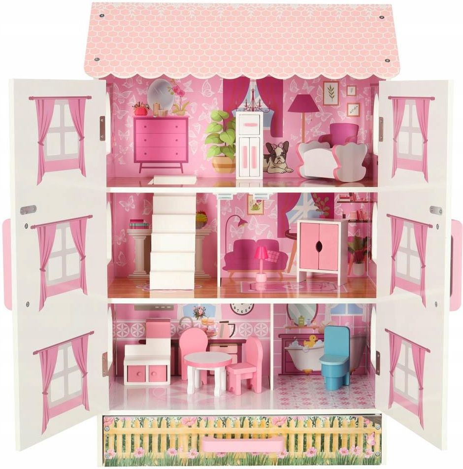 Lulilo Domek Dla Lalek Drewniany Papilio Różowy 80Cm Z Meblami Katowice