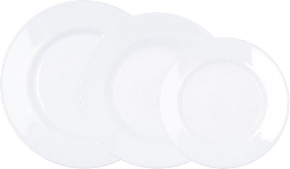 Serwis obiadowy 18 elementów Luminarc Plumi Everyday – biały komplet dla 6 osób Postaw na elegancję i funkcjonalność w swojej jadalni! Biały serwis obiadowy Luminarc Plumi Everyday to idealne połączenie nowoczesnej formy i codziennej wygody. Wykonany z trwałego, barwionego szkła hartowanego, świetnie sprawdzi się zarówno na wyjątkowe okazje, jak i do codziennego użytku. Dzięki odporności na wysoką temperaturę możesz bezpiecznie używać naczyń w mikrofalówce, a po posiłku wygodnie umyć je w zmywarce. Najważniejsze cechy ✔️ 18 elementów – pełen zestaw dla 6 osób ✔️ Twarde szkło hartowane – trwałe i odporne na zarysowania ✔️ Klasyczny biały kolor – pasuje do każdej aranżacji stołu ✔️ Do zmywarki i mikrofalówki – wygoda na co dzień ✔️ Marka Luminarc – francuska jakość i design W skład zestawu wchodzi 6 x talerz obiadowy – 24 cm 6 x talerz głęboki – 22 cm 6 x talerz deserowy – 19 cm Parametry techniczne Marka: Luminarc Model: Plumi Everyday Kolor: Biały Materiał: Szkło hartowane Zastosowanie: Zmywarka, kuchenka mikrofalowa Liczba elementów: 18 Dla ilu osób: 6 Waga zestawu: 5,545 kg EAN: 883314969504 Zamów już dziś i ciesz się stylowym nakryciem stołu z marką Luminarc!