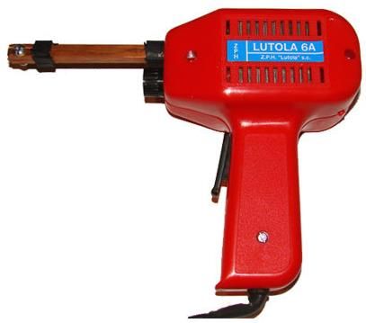 Lutpol polska lutownica transformatorowa 75W L6A, Lutola Lutownica powszechnego użytku do łączenia elementów metalowych, proponowana do napraw i majsterkowania zarówno w gospodarstwie domowym, jak i serwisie. Produkt całkowicie Polskiej produkcji, dzięki czemu cechuje się nie tylko doskonałą precyzją, ale także długim i niezawodnym użytkowaniem. Lutownica transformatorowa posiada obudowę z tworzywa sztucznego zapewniającą bezpieczne działanie. W konstrukcji lutownicy uwzględniono bardzo istotne wymogi ergonomiczne. Środek ciężkości jest tak usytuowany, że nawet długotrwała praca lutownicą nie powoduje zmęczenia dłoni. Sprzęt doskonale nadaje się zarówno dla amatorów, jak i dla wytrawnego elektronika. Trwała konstrukcja w połączeniu z wieloletnim doświadczeniem firmy Lutpol w produkcji lutownic owocuje niepodważalną pozycją lidera tego sektora, a produkty łódzkiej firmy od lat stanowią wyznacznik współczesnego sprzętu z zakresu elektryki i elektroniki. Specyfikacja Napięcie znamionowe: 230 V, 50 Hz Pobór mocy: 75 W Temperatura grotu: 450°C Rodzaj pracy: dorywcza Czas pracy: 30 sek. Czas przerwy: 90 sek. Oświetlenie grotu: żarówka 12 V, 2 W Średnica grotu: 1,5 mm