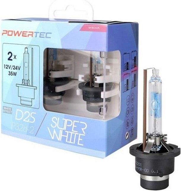 - typ żarówki: D2S - podstawa: p32d-2 - barwa: do 5000K - rodzaj: ksenonowe - pobór mocy: 35W - napięcie: 85V - homologacja: E4 - zestaw zawiera: 2 szt. - marka: PowerTec- linia produktu: SuperWhite - symbol: PTZSWD2S-DUOWŁAŚCIWOŚCI: -Intensywne, białe światło -Innowacyjne niebieskie pasy na powłoce palnika -Uszlachetniona mieszanka gazu ksenonowego -Filtr UV -Wykonane ze szkła kwarcowego -Stalowe wsporniki szklanego palnika -Eleganckie, podwójne opakowanie nbsp;nbsp;nbsp;nbsp;nbsp;nbsp;nbsp;nbsp;nbsp;nbsp;nbsp;nbsp;nbsp;nbsp;nbsp;nbsp;nbsp;nbsp;nbsp;nbsp;nbsp;nbsp;nbsp;nbsp;nbsp; Opis produktu Żarówka ksenonowa POWERTEC Super White to białe, intensywne światło z niebieską linią na granicy światło cienia. Stanowi idealną propozycję dla osób, dla których ważny jest nowoczesny wygląd samochodu. Specjalne, jasno błękitne pasy naniesione na powłokę palnika powodują, że powstaje charakterystyczna dla serii Super White wyraźna niebieska linia na granicy światło-cienia. Takie rozwiązanie powoduje, że efekt olśnienia dla kierowców jadących z przeciwka jest niewielki a dodatkowo daje spektakularny efekt wizualny. Osoba jadąca z przeciwka widzi w pierwszym momencie niebieską poświatę, która nadaje eleganckiego wyglądu, podkreślającą dynamiczną linię naszego samochodu. Stanowią idealne rozwiązanie dla osób ceniących sobie bezpieczeństwo na drodze oraz nowoczesny wygląd. Innowacyjną linię palników ksenonowych PowerTec SuperWhite cechuje przede wszystkim zwiększona widoczność, bezpieczeństwo i komfort podczas prowadzenia samochodu. Żywotność palników ksenonowych serii POWERTEC określana jest na 2500h. Zestaw zawiera: - 2 szt. żarników D2S - podwójne pudełko