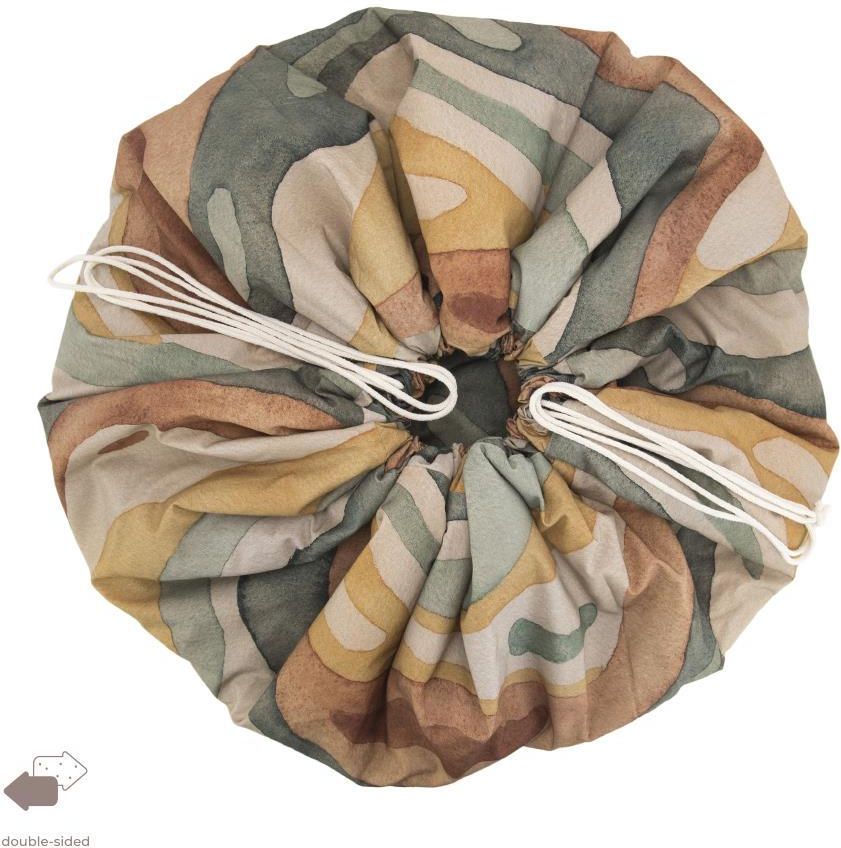 Wyjątkowa mata do zabawy w kształcie koła i worek na zabawki w jednym. Dzięki optymalnemu rozmiarowi matę można rozłożyć w pokoju dziecka, w salonie, czy też w ogrodzie. Mata do zabawy została uszyta w taki sposób, aby po zakończonej zabawie zwinąć ją szybko razem z zabawkami i nie martwić się o bałagan. W obwód ma wszyty mocny sznurek, który zaciąga się tworząc z maty duży worek na zabawki. Obustronnie wykonana jest z najwyższej jakości bawełny. W środku mata wypełniona jest antyalergiczną, lekką, silikonową włókniną zapewniającą miękkość i izolację od twardego podłoża. Okrągłą Mata do zabawy doskonale sprawdza się w formie stylowego prezentu na miłą okazję.