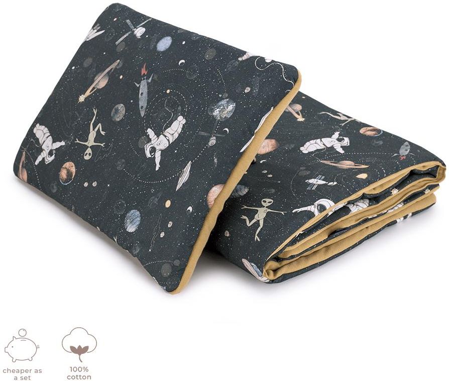 Cieplutki komplet Cotton – doskonały do wózka i łóżeczka, jako mata do zabawy, a także jako ulubiona pościel na wszelkie wyjazdy Poduszka Cotton jest płaska, wygodna i mięciutka, a kocyk niezwykle puszysty i cieplutki. Kocyk obustronnie wykonany ze 100% bawełny. Jedna strona, wykonana jest z najwyższej jakości płótna bawełnianego w autorski wzór. Druga strona, to mięciutka i delikatna dzianina bawełniana przyjazna delikatnej skórze dziecka. W środku wypełniony antyalergiczną, lekką, silikonową włókniną zapewniającą ciepło maluszkowi. Mięsista i miła w dotyku dzianina bawełniana to idealny materiał, jest nieziemsko delikatny, a zarazem niezwykle wytrzymały. Zestaw Cotton można skompletować z różnymi produktami marki Makaszka tworząc niepowtarzalną, bajecznie kolorową aranżację wózka, czy też pokoiku Twojego Maluszka. Doskonale też sprawdza się w formie stylowego prezentu dla małych pociech naszych przyjaciół, na baby shower i każdą inną miłą okazję. Kocyk cm (+/- 2cm). 75 x 100 Poduszka cm (+/- 2cm) 30 x 40 Skład Wierzch - 100% bawełna Wypełnienie - 100% poliester - oddychająca i antyalergiczna włóknina silikonowa. Bawełna i wypełnienie posiadają Certyfikat Oeko-Tex Standard 100 Klasa I. Wypełnienie wewnątrz jest wszyte do tkanin zewnętrznych, dzięki temu nie przemieszcza się podczas użytkowania i w praniu. Odcienie druku na tkaninie mogą minimalnie różnić się od odcieni druku tej samej kolekcji na innych materiałach. Nie stanowi to wady produkcyjnej. Produkt szyty ręcznie w Polsce, z najwyższą starannością i dbałością o szczegóły, zapewniając najwyższą jakość produktu i długoletnią przyjemność z użytkowania. Dedykowany Maluszkom w wieku od 0 do 24 miesięcy.