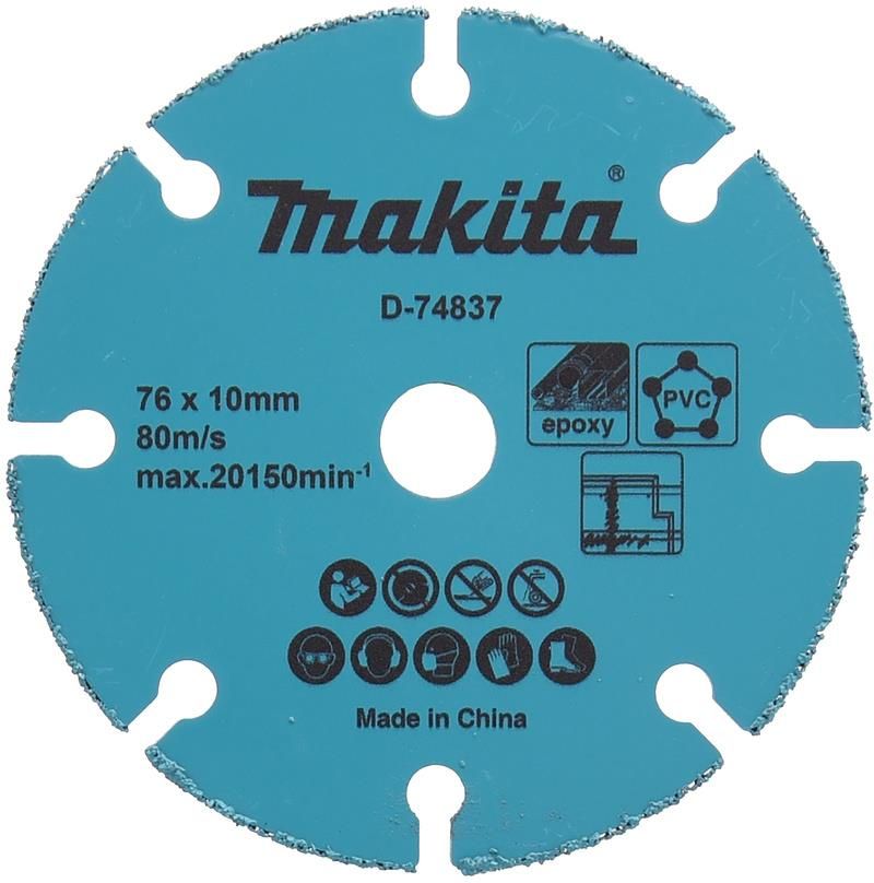Tarcza z węglikiem spiekanym 76x1,7mm multimateriałowa Makita D-74837 Dane techniczne Rodzaj tarczy: Diamentowa Typ: Z nasypem z węglika spiekanego spawanym laserowo Średnica tarczy: 76mm Średnica otworu tarczy: 10mm Maksymalna prędkość obrotowa: 20150obr./min Grubość tarczy: 1,7mm Ziarnistość: …