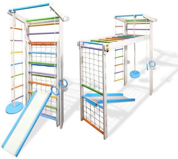 Domowy Plac zabaw Drabinka Czempion biało-kolorowa Wymiary: 102 x 80 x 225 cm, obciążenie drabinki do 100 kg. Producent: Domowy Plac zabaw Drabinka Czempion biało-kolorowa Kod producenta: 27788 EAN: 5908271391849 PARAMETRY TECHNICZNE Stan: Nowy, oryginalny produkt Wymiary (dł. szer. wys.): 167 x 102 x 225 cm Max obciążenie: 100 kg Kolor/Wzór: biało-kolorowy Drewniana drabinka do ćwiczeń w pokoju malucha sprzyja zużywaniu nadmiaru energii, rozwoju koordynacji ruchów, współpracy i wspólnemu spędzaniu czasu rodzeństwa i dzieci z rodzicami, rozwoju mięśni nóg i rąk oraz siłę chwytu u dziecka. Wszystko to definitywnie może zaowocować lepszymi wynikami naszej pociechy nie tylko w dyscyplinach sportowych, ale również postępami w nauce. Dodatkowe wyposażenie dostępne w ofercie służy rozbudowaniu drewnianej drabinki do ćwiczeń Czempion w nowe, ciekawe urządzenia do zabawy i ćwiczeń. ELEMENTY ZESTAWU drabinka gimnastyczna / drabinka pozioma drążek nieprzesuwny siatka wspinaczkowa zjeżdżalnia talerz-huśtawka kółka gimnastyczne drabinka linowa WAZNE Zestaw przeznaczony dla dzieci o wadze powyżej 20 kg oraz dorosłych Dopuszczalne obciążenie: drabinka gimnastyczna – 100 kg drabinka pozioma – 50 kg akcesoria zawieszane – 60 kg zjeżdżalnia – 40 kg Szerokość całkowita zestawu: 102 cm Szerokość drabinki: 80 cm Głębokość zestawu: 167-170 cm Wysokość zestawu: 225 cm Długość drabinki poziomej: 170 cm Głębokość drążka: 48 cm Głębokość od ściany do końca drążka: 59,5 cm Szerokość siatki sznurkowej: 62 cm Średnica szczebli drabinki: 3,5 cm Montaż: do ściany Kolorystyka: biało-kolorowy Zalecenia producenta: dzieci powinny ćwiczyć tylko pod nadzorem rodziców