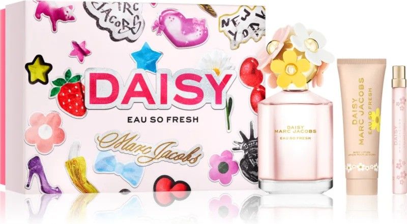 Marc Jacobs Daisy Eau So Fresh, 1 szt., Pielęgnacja ciała dla kobiet, Podkręć intensywność swojego ulubionego zapachu. Zestaw perfum dla kobiet Marc Jacobs Daisy Eau So Fresh zawiera nie tylko sam zapach, ale także kosmetyki pielęgnacyjne o tej samej nucie zapachowej. Dzięki temu Twoja codzienna rutyna w łazience będzie idealnie spójna, a doznania zmysłowe przedłużone. Właściwości: zestaw zawiera perfumy i dodatki kosmetyczne z tej samej linii zawiera pełny rozmiar zapachu i jego miniaturę doskonały pomysł na prezent sprawi radość każdej kobiecie Zawartość zestawu: Marc Jacobs Daisy Eau So Fresh woda toaletowa 125 ml Marc Jacobs Daisy Eau So Fresh woda toaletowa spray podróżny 10 ml Marc Jacobs Daisy Eau So Fresh mleczko do ciała 75 ml