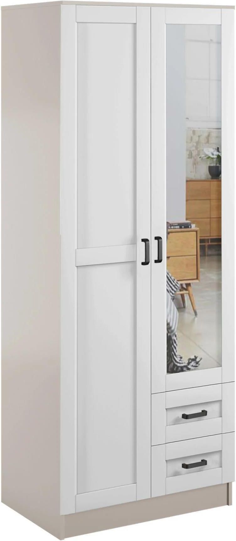 Mebel Bos Szafa Cento Ii 80X200 2D2S Kaszmir Biała Ramka Z Lustrem Katowice
