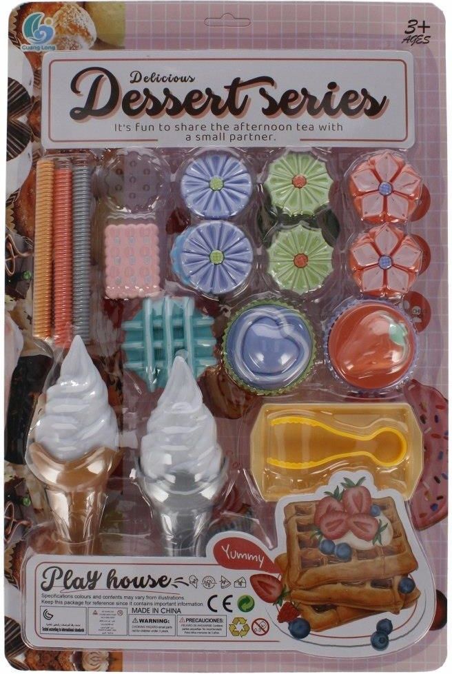 Zestaw kuchenny mix MEGA CREATIVE PRODUCENT: MEGA CREATIVE Zalety produktu: rozwija zdolności poznawcze, kreatywność dziecka. Twoje dziecko najlepiej uczy się poprzez zabawę. Zachęcając je do niej, przyczyniasz się do rozwoju jego kreatywności, zmysłów i zdolności poznawczych. Zestaw MEGA CREATIVE będzie doskonałym uzupełnieniem każdej dziecięcej kuchni Zawartość zestawu:2x lody włoskie, taca szczypce, 3x muf finek, 3x makaroniki, 8x mix ciasteczek. Wszystkie produkty są imitacją prawdziwych . Całość wykonana z plastiku. Wymiary/waga/baterie: wymiary produktu dł. x wys. x gł. cm :-lód włoski 6x7x6,17, wymiar opakowania dł. x wys. x gł. cm : 29x44x9, waga produktu bez opakowania kg : 0,28 kg, waga produktu w opakowaniu kg : 0,30 kg, nie wymaga zasilania bateriami. Produkt przeznaczony dla dzieci w wieku: 3 . Pakowany na blistrze. W kartonie zbiorczym po24/48 szt.