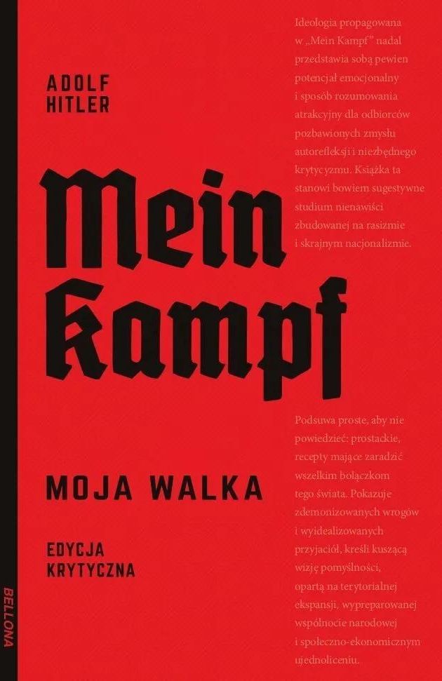 To jedna z najbardziej złowrogich książek w dziejach ludzkości, która przygotowała grunt pod drugą wojnę światową - najkrwawszą z wojen - i masowe zbrodnie Trzeciej Rzeszy. „Mein Kampf” (pol. „Moja walka”) to ideologiczne „wyznanie wiary” Adolfa Hitlera. Książka opublikowana w dwóch częściach w latach 1925-1927 stała się biblią niemieckich narodowych socjalistów. W Trzeciej Rzeszy wręczano ją m.in. nowożeńcom. Do końca wojny tylko w Niemczech sprzedano ponad 12 mln egzemplarzy! W pierwszej części książki Hitler zamieścił propagandową wersję swej biografii. W drugiej zaś zawarł podstawy ideologii ruchu narodowosocjalistycznego. Powołując się na rasistowskie teorie, dowodził, że Niemcy przewodzą aryjskiej „rasie panów”. Nienawidził Żydów, których po przejęciu władzy chciał się pozbyć, a także Słowian. Hitler obiecywał rodakom zmazanie klęski wojennej z 1918 roku, zjednoczenie narodu, budowę „Wielkich Niemiec” oraz uzyskanie „przestrzeni życiowej” na Wschodzie. Choć te zapowiedzi uważano za bufonadę szaleńca, stały się one tragiczną rzeczywistością w latach trzydziestych i czterdziestych. Po upadku reżimu hitlerowskiego „Mein Kampf” w wielu krajach została zakazana. Edycja niemiecka ukazała się dopiero w 2016 roku. Polski czytelnik obecnie dostaje do ręki drugie na świecie wydanie krytyczne tej książki. Autorem przekładu, opracowania naukowego i wstępu jest prof. Eugeniusz Cezary Król, znawca dziejów Trzeciej Rzeszy i narodowego socjalizmu.