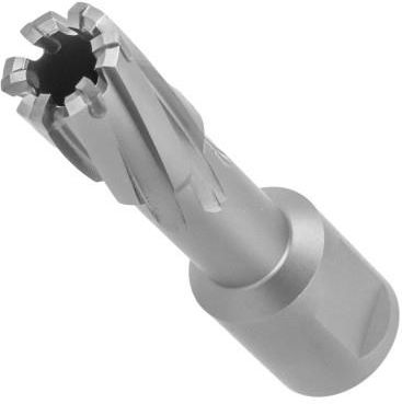 Wiertła koronowe z ostrzami z węglików spiekanych zapewniają czyste cięcie, szybki posuw i mniej wibracji. Przy obróbce standardowych materiałów wykazują podwójną żywotność w porównaniu z wiertłami HSS. ZASTOSOWANIE GŁÓWNE: stal zwykła i stopowa (o wytrzymałości do 1100N/mm2) stal nierdzewna INOX aluminium i jego stopy mosiądz brąz żeliwo Świetnie sprawdzą się podczas prac takich jak: wiercenie otworów we wszystkich rodzajach stali prace i montaże w terenie przy konstrukcjach stalowych, mostowych, stoczniowych, itp. montaż metalowych instalacji w terenie prace serwisowe i naprawcze urządzeń dźwigowych, ciężkiego sprzętu np. koparek itp. ZASTOSOWANIE OPCJONALNE: stal zwykła i stopowa (o wytrzymałości do 1300N/mm2) stop tytanu tworzywa sztuczne Wiertła trepanacyjne najlepiej sprawdzą się z pilotem prowadzącym, który spełnia kilka funkcji: funkcja pozycjonująca umożliwia dopływ cieczy chłodzącej do środka wierconego otworu wypycha pozostałą część materiału z wnętrza wiertła trepanacyjnego ROZMIAR UCHWYTU MOCUJĄCEGO: Frezy >Ø 60: WELDON 32mm (1.1/4") Frezy <Ø 60: WELDON 19mm (3/4") Frezy w rozmiarze Ø 60, 62, 65 mm: oferujemy w dwóch wariantach Istnieje możliwość dokupienia redukcji z weldon 32mm na weldon 19mm