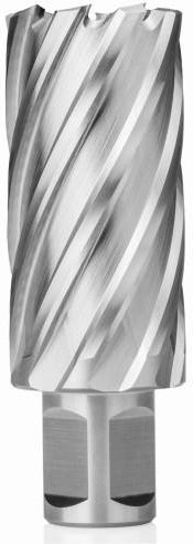 DANE TECHNICZNE: D1 [średnica]: 28 mm D2 [rozmiar uchwytu mocującego]: WELDON 19 mm (3/4") L1 [długość całkowita]: 65 mm L2 [głębokość skrawania]: 50 mm SZCZEGÓLNE CECHY: Specjalistyczne narzędzia dedykowane do obróbki szyn kolejowych oraz innych bardzo twardych materiałów, w tym do produkcji specjalistycznych maszyn. Wiertła trepanacyjne seria RAIL wykonane są ze stopu super twardej stali szybkotnącej, która została poddana specjalnemu procesowi obróbki cieplnej w celu osiągnięcia doskonałej wydajności. W pracy wykazują znacznie wyższą wydajność i żywotność w porównaniu do wierteł wykonanych ze zwykłej stali narzędziowej HSS. Wyróżnia je wyjątkowo wysoka odporność na temperatury, możliwość pracy na sucho. Specjalna geometria zębów czołowych, szybkie odprowadzanie ciepła, stabilne usuwanie wiórów, możliwość uzyskania dużego posuwu i doskonałej wydajności wiercenia. Doskonałe parametry pracy, wysoka twardość, super długa żywotność w stabilnych warunkach pracy. ZAKRES DOSTAWY: 1 x FI 28 mm x 50 mm Frez Trepanacyjny HSSE RAIL