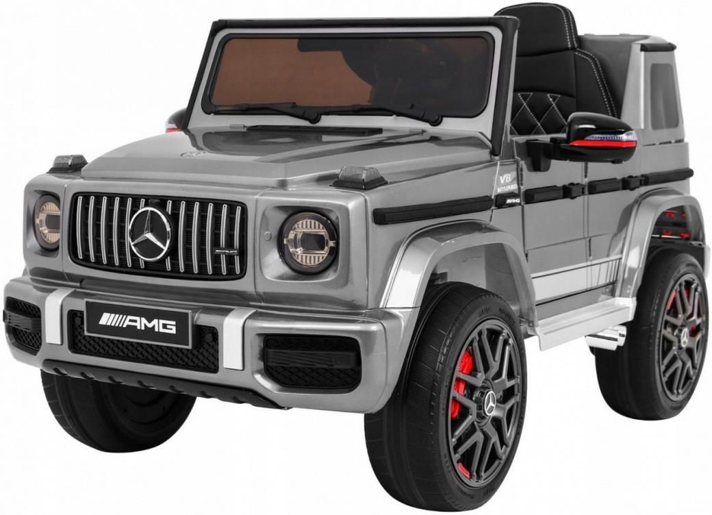 Auto dla dzieci na Akumulator Mercedes G63 AMG Auto na Akumulator Mercedes G63 AMG 2x45W PILOT WERSJA EXCLUSIV-POJAZD pomalowany prawdziwym lakierem. WYPOSAŻONY W SIEDZENIE Z EKOSKÓRY ORAZ KOLA Z PIANKI EVA Dziecięca wersja Mercedesa G63 AMG na akumulator będzie rewelacyjnym prezentem dla każdego kilkulatka, który uwielbia bawić się autkami różnego rodzaju. Pełnowymiarowy Mercedes G63 AMG pierwotnie został zaprojektowany dla armii, czemu zawdzięcza swój bryłowaty, toporny kształt, niepozwalający na pomylenie go z innym modelem. Ostre linie znalazły się również w konstrukcji akumulatorowej wersji Mercedesa G63 AMG dla dzieci. Silnik: 2x45W Akumulator: 12V/7Ah Pilot: 2,4G + Stop, Koła: EVA - 27x10 cm Biegi: Wolny Start, Przód/Tył Światła: LED, Przód Wyposażenie: Panel Audio: MP3, SD, AUX, USB + Dźwięki w Kierownicy Wskaźnik Naładowania: TAK Start: Podświetlany Włącznik Siadzenie: Ekoskóra + Pasy - 35x21x34 cm Bagażnik: Zapasowe koło - średnica 25cm, szerokość 8cm Otwierane Drzwi: Tak Uchwyt Transportowy: Rączka Wymiary: Rozmiar Pojazdu: 120x76x67 cm Waga Pojazdu: 18 Kg Rozmiar Kartonu: 117x62x35 cm Waga Kartonu: 21 Kg Maksymalne Obciążenie: 30 Kg Prześwit: 12 cm Kola z pianki EVA-mocniejsze od zwykłych kół. Koła są ciche oraz konfortowe Dlaczego warto wybrać Mercedesa G63 AMG ? Polecamy go ze względu na: - oficjalną licencję koncernu Mercedes-Benz Daimler AG, - surowy design nawiązujący do wyglądu pełnowymiarowego Mercedesa G63 AMG, - połączenie komfortu jazdy z bezpieczeństwem zabawy, - zasilanie wysokogatunkowymi podzespołami, - urozmaicenia w formie panelu dźwiękowego lub oświetlenia LED. Mercedes G63 AMG jest istnym połączeniem solidności, najwyższej jakości i militarnego wzornictwa. Pojazd ten sprawdzi się zarówno podczas codziennych jazd po osiedlu, jak i w czasie weekendowych wycieczek poza miasto. Znajdujące się „pod maską” dwa silniki o mocy 45W każdy w połączeniu z akumulatorem 12V7Ah umożliwiają jazdę w prędkości od 3 do 5 km/h, co z pewnością zrobi wrażenie nie tylko na małym kierowcy, ale i przechodniach. WOLNY START bardzo ważną zaletą naszych pojazdów na akumulator dla dzieci jest opcja tzw. wolnego startu, która zwykle towarzyszy modelom wyposażonym w powyżej opisany pilot 2,4 G. Funkcja ta pozwala rodzicom, którzy sterują pojazdem na powolne ruszenie z miejsca w przód lub tył. Nie obserwujemy gwałtownego zrywu autka. Wewnątrz Mercedesa umieszczono miękką kanapę wykończoną pikowaną ekoskórą, regulowane pasy bezpieczeństwa, a także podświetlaną deskę rozdzielczą. Znajduje się na niej obrotowa kierownica sygnowana logo z trójramienną gwiazdą, imitacje wskaźników, między innymi prędkościomierza i obrotomierza, czy odtwarzacz muzyczny z funkcją radia FM, podłączenia słuchawek, USB lub karty pamięci. Rozwiązanie to uprzyjemni każdą podróż, pozwalając poczuć się maluchowi jak w prawdziwym aucie. Wyposażenie Dodatkowe Instrukcja + Zestaw Montażowy Ładowarka Z Diodą Kontrolującą Naładowanie Baterii Pokrowiec Na Pojazd USB PenDrive 1Gb Z Filmem Instruktażowym Kabel MiniJack
