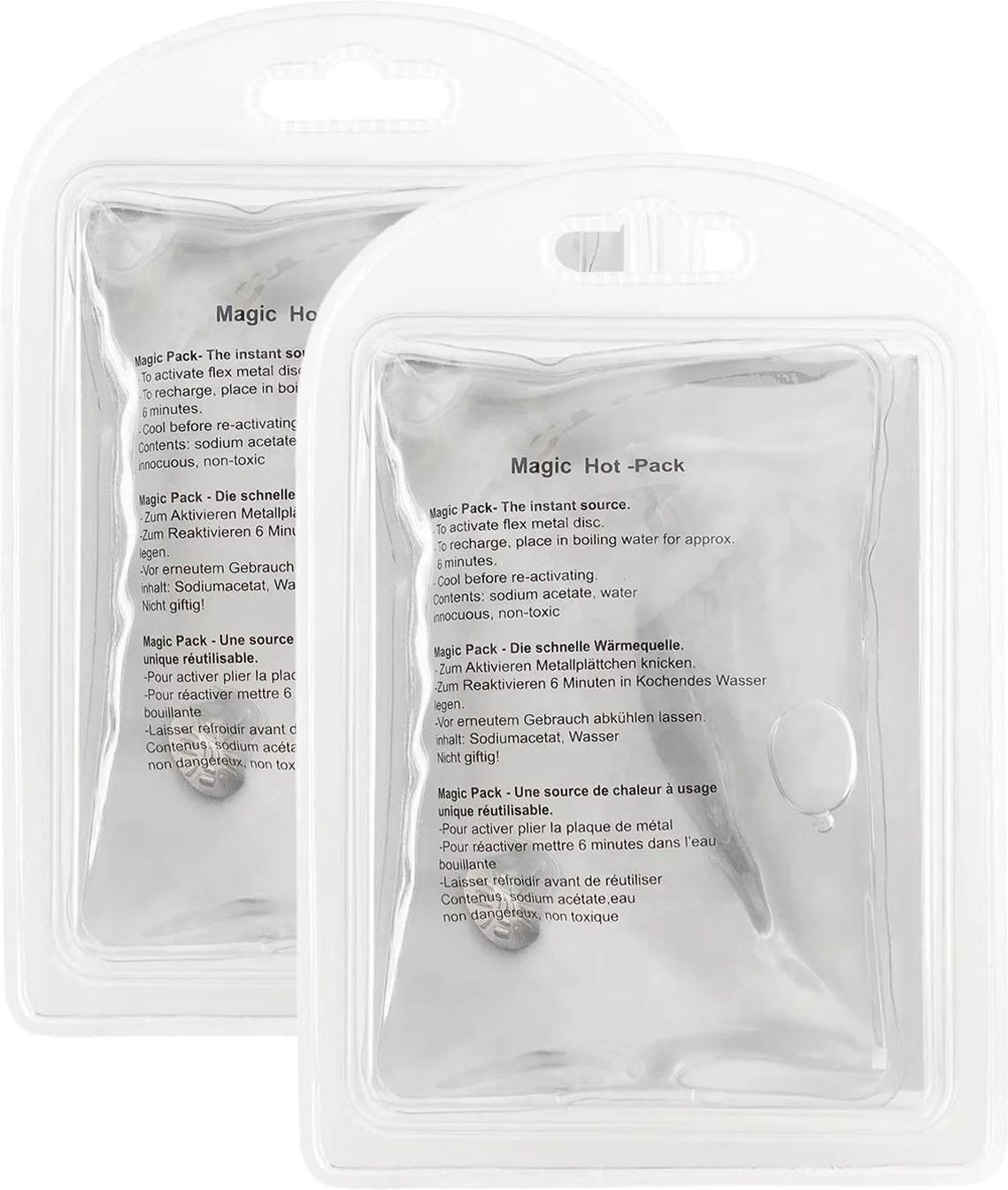 Zestaw 2 ogrzewaczy do rąk wielokrotnego użytku. Po aktywacji ogrzewacza uzyskuje on temperaturę do 60 st. C i emituje ciepło około 60 minut. Głównym składnikiem ogrzewacza jest octan sodu, który krystalizuje się i wytwarza ciepło wskutek pobudzenia bodźcem mechanicznym, czyli przełamaniem blaszki znajdującej się wewnątrz ogrzewacza.
