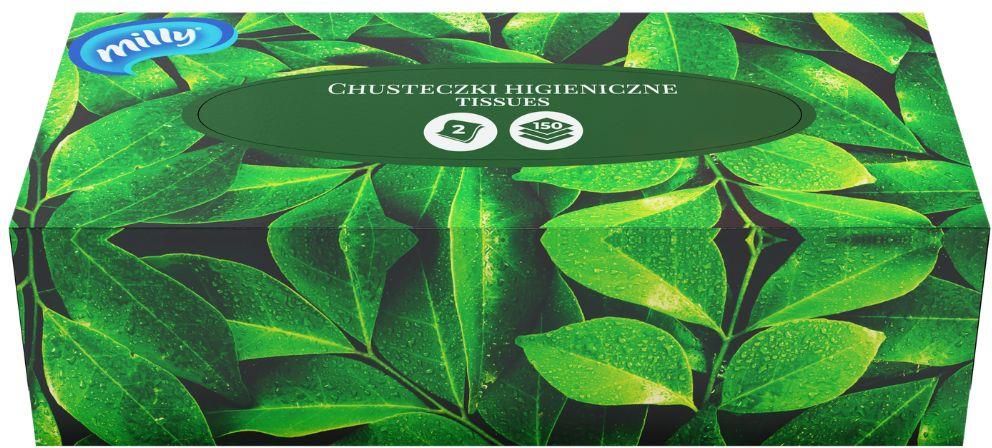 Milly chusteczki higieniczne 2 warstwyChusteczki higieniczne BOX 150 szt. 2 warstwowe to niezawodne rozwiązanie dla utrzymania wysokiej higieny. Wykonane z 100% celulozy, te pudełkowe chusteczki zapewniają niezwykłą czystość, na której można polegać.Papierowe chusteczki higieniczne w formie BOX to praktyczne rozwiązanie do codziennego użytku w domu, biurze czy samochodzie. Opakowanie zawiera 150 chusteczek, które są łatwo dostępne dzięki specjalnemu otworowi w górnej części pudełka.Chusteczki są miękkie, dwuwarstwowe i chłonne, idealne do wycierania nosa, twarzy oraz rąk. Opakowanie BOX zapewnia wygodę i higienę, chroniąc chusteczki przed zanieczyszczeniem i utrzymując je w czystości.