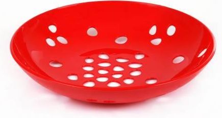 efektowna misa na owoce, wykonana z wysokiej jakości, utwardzonego, błyszczącego tworzywa sztucznego otwory zapewniają odpowiednią cyrkulację powietrza, dzięki czemu owoce dłużej zachowują świeżość specjalnie wyprofilowane nóżki zapewniają dodatkową stabilizację misy nietoksyczna, bezpieczna, BPA FREE misa nadaje się do mycia w zmywarce w przypadku jej ewentualnego zniszczenia – recykling 100% kolor czerwony