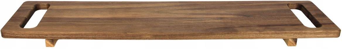 TALERZ taca do serwowania DESKA 60x13x3 cm z drewna AKACJI KAŻDA INNA - naturalny produkt Świetnie sprawdzi się jako deska do serwowania np. przekąsek, przystawek i innych smakowitości. Jako podkładka pod gorące patelnie żeliwne, czy inne naczynia. Może spełniać funkcje dekoracyjne, jako podstawka pod świeczkę, wazonik z kwiatami, jak również stanowić bazę pod stroik. Ważna informacja, aby drewno dłużej zachowało swoje walory estetyczne: warto od czasu do czasu natrzeć je olejem jadalnym myć przecierając wilgotną ściereczką, po umyciu suszyć w pozycji pionowej, po to aby zapewnić swobodny przepływ powietrza z każdej strony deski, umożliwiając tym samym dokładne jej wysuszenie w żadnym wypadku nie myć w zmywarce. Parametry materiał: z drewna akacjowego barwa: produkt NATURALNY kształt: prostokątny na nóżkach z uchwytami wymiary: 60x13x3 cm cm grubość: 2 cm Kod produktu: 8712442835585 Ze względu, iż jest to produkt NATURALNY deski/ tace mogą różnić się barwą. Możliwe rysy powstałe podczas produkcji. Nie jest to podstawa do reklamacji. Prosimy o przemyślane zakupy. Z powodzeniem może spełniać funkcje dekoracyjne, jako podstawka pod świeczkę, wazonik z kwiatami, jak również stanowić bazę pod stroik.