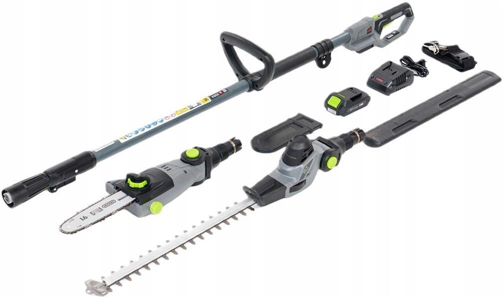DWUFUNKCYJNE URZĄDZENIE AKUMULATOROWE NAC model PHCB20e-B20-S akumulator 20V + ładowarka w zestawie beznarzędziowy system naciągu łańcucha SDS pochylane głowice Dzięki urządzeniu akumulatorowemu NAC praca stanie się o wiele przyjemniejsza. Bezemisyjna i cicha praca o nieograniczonym zasięgu działania. Doskonałe do wszechstronnych prac w ogrodzie: pielęgnacji żywopłotów oraz okrzesywania drzew z poziomu ziemi. PRODUKT POCHODZI Z AUTORYZOWANEJ POLSKIEJ DYSTRYBUCJI NAC NAC to ceniona przez Klientów, wyróżniana za innowacje i jakość oraz najczęściej wybierana marka sprzętu ogrodniczego w Polsce. Firma NAC od 1991 roku oferuje stale rosnącą, szeroką gamę narzędzi ogrodniczych. Sprawdzone, doskonałe modele pracują w ogrodach tysięcy Polaków już od ponad 30 lat. Postaw na tradycję i przetestowane rozwiązania. 1. Nożyce do żywopłotu NAC z dwustronną listwą tnącą o długości 40cm o optymalnej geometrii noży. Posiadają pochylaną głowicę tnącą. Niezwykle poręczne, doskonałe do pielęgnacji i formowania zieleni w każdym ogrodzie. Nadają się do przycinania wysokich i szerokich żywopłotów. Nieocenione, gdy chcemy zachować ciszę podczas przycinania żywopłotów. Maksymalna grubość cięcia nożycami 17mm. Długość nożyc 40cm. Zakres pracy nożycami (głowica pod kątem 90°) 150-230 cm Zakres pracy nożycami (głowica pod kątem 0°) 220-300 cm Waga całkowita z akumulatorem to jedynie 4.8kg 2. Pilarka NAC z prowadnicą 20cm. Posiada pochylaną głowicę tnącą. Uniwersalna - nadaje się zarówno do prostych prac w drzewostanie jak i do bardziej skomplikowanych cięć. Konstrukcja pilarki zapewnia wyważony rozkład ciężaru. Posiada osprzęt tnący LOW KICKBACK - łańcuch o zmniejszonym odbiciu i znakomitych właściwościach tnących. Zakres pracy pilarką 190-270 cm Waga z akumulatorem tylko 7.2kg Zaletą narzędzi akumulatorowych jest możliwość pracy wszędzie tam gdzie ograniczenie stanowi dostępność gniazda elektrycznego. Kolejne korzyści to brak spalin (ekologiczna), niedroga eksploatacja i możliwość łatwego transportu. Niesamowitą zaletą urządzenia jest jego waga. Tylko 7.2kg (pilarka) i 4.8kg (nożyce) pozwala na bardzo efektywną i przyjemną pracę Uruchamianie silnika to kolejny atut tego modelu - wystarczy włączyć Start - bez żadnego wysiłku. Rewolucyjne rozwiązanie - pielęgnacja ogrodu bez użycia drabiny. Nożyce są doskonałe do pracy bezpośrednio przy żywopłocie lub z odległości, np. ponad ogrodzeniem, murem. Odpowiednie również do poziomego przycinania niższej roślinności, krzewów, wysokiej trawy. Podkrzesywarka jest idealna do prac na terenach wymagających zachowania ciszy. Przeznaczona do ekonomicznej pielęgnacji drzew przy domu, drzew owocowych i prześwietlania koron. DANE TECHNICZNE model PHCB20E-B20-S akumulator 20V Li-lon 2.0Ah prędkość przesuwu łańcucha 5.5m/s długość prowadnicy 200mm zakres pracy pilarką 190-270cm pojemność zbiornika oleju do smarowania łańcucha 90ml typ łańcucha i prowadnicy podziałka łańcucha 3/8”, szer. rowka 1.3mm, ilość ogniw 33 szt. długość nożyc tnących 400mm maksymalna grubość cięcia nożycami 17mm Zakres pracy nożycami (głowica pod kątem 90°) 150-230 cm Zakres pracy nożycami (głowica pod kątem 0°) 220-300 cm prędkość obrotowa bez obciążenia 1400obr./min waga z nasadką nożyc 4.8kg waga z nasadką pilarki 7.2kg LOW KICKBACK - ogniwa tnące łańcucha są w kształcie podciętego dłuta z dwoma narożami tnącymi. Zapewniają niską wibrację i zmniejszone odbicie przy pierwszym kontakcie. To znakomita wydajność i trwałość. Duża ergonomia i sztywność dzięki zastosowaniu lekkiego wysięgnika teleskopowego. Praca bez wysiłku oraz łatwa obsługa dzięki ergonomicznie wyprofilowanemu uchwytowi. Urządzenie cechuje się wysoką wydajnością, niskim poziomem hałasu oraz najlepszą w swojej klasie ergonomią i użytecznością. Maszyna jest doskonale wyważona oraz wyposażona w innowacyjny uchwyt minimalizujący męczące wibracje. DANE TECHNICZNE AKUMULATORA Model B20-20-S Napięcie 20V Waga 0.4kg Typ Li-Ion Pojemność 2.0Ah Czas ładowania akumulatora 80 min. DANE TECHNICZNE ŁADOWARKI Model BC20-20-S Napięcie zasilania i częstotliwość 220-240 VAC, 50/60 Hz Napięcie ładowania 21V DC Moc znamionowa 42W Max prąd ładowania 2A W ZESTAWIE Dwufunkcyjne urządzenie akumulatorowe NAC w oryginalnym kartonie NAC (nasadka pilarki i nożyc oraz wysięgnik akumulatorowy) Akumulator Ładowarka Łańcuch i Prowadnica Osłona prowadnicy i osłona listwy nożyc pas na ramię dokumenty gwarancyjne Instrukcja obsługi w języku polskim