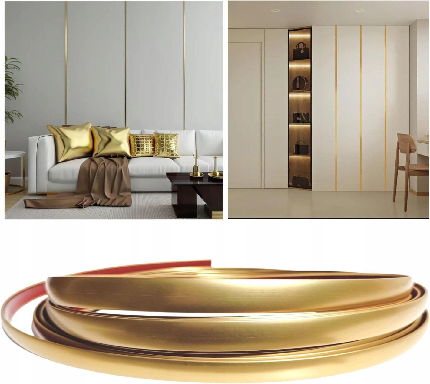 Listwa Ozdobna Gold 12mm Dekoracyjna Elastyczna Złota Matowa Samoprzylepna Listwy ozdobne elastyczne chrom złote gold mat w rozmiarze 12mm szerokości i 8 metrów długości Listwa ozdobna o wymiarach szerokość 12mm długość 8M Kolor: złoty mat Montaż za pomocą taśmy dwustronnej samoprzylepnej LISTWY SĄ …