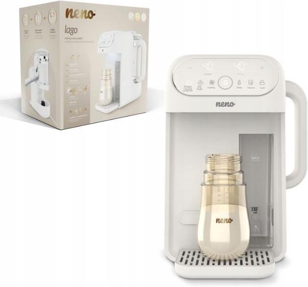 - NOWY - nieodebrana paczka od klienta - sprawny Neno Lago – Ekspres do przygotowywania mleka modyfikowanego Ekspres Neno Lago to Twój sojusznik w przygotowaniu mleka modyfikowanego, oferujący aż 61 ustawień temperatury oraz funkcje gotowania, chłodzenia i podgrzewania wody. Zaprojektowany z myślą o oszczędności czasu, pozwala na błyskawiczne przygotowanie idealnej porcji dla dziecka. Dodatkowo, tryb cichy, lampka nocna i automatyczne oczyszczanie zapewniają komfort i higienę o każdej porze. Dane techniczne Model: Neno Lago Napięcie zasilające: 220V-240V~ 50/60Hz Moc grzewcza: 100 W Maksymalna pojemność: 2L Wymiary produktu: 33x17x29 cm Waga produktu: 2,54 kg Wymiary pudełka: 37x33x26 cm Waga pudełka: 3,35 kg